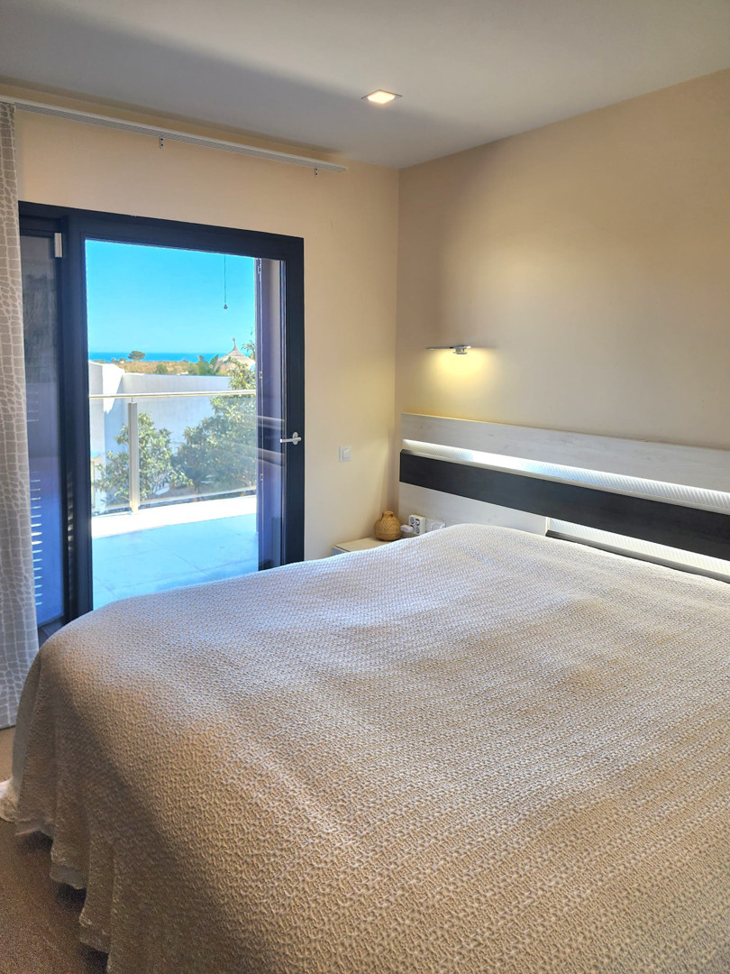 This fantastic modern villa is located in Cumbre del Sol and offers stunning sea views. The villa was built in 2020 with high-quality materials and is distributed over two floors. An automatic gate provides access to the property where parking is provided for 1 car and a motorcycle. A few steps down is the entrance to the villa. You enter a hall with built-in wardrobes and a guest toilet. Oriented towards the south is a spacious living-dining room with an open kitchen with a cooking island. The kitchen is made of unique materials imported from Canada and is equipped with all MIELE brand electrical appliances. The large windows ensure that you enjoy a lot of natural light and of course can enjoy the beautiful view from both your kitchen and your lounge. Through the windows there is also direct access to the adjoining terrace where the swimming pool is located. The ground floor consists of four double bedrooms and two bathrooms. All bedrooms have fitted wardrobes and access to a covered terrace. The villa has ducted air conditioning hot cold and a solar water heater for hot water. There is another storage room under the swimming pool. The plot has a total area of 836 m2. On the ground floor there is a large flat garden area. Here it is possible to build a terrace with a larger pool if desired. The plot also contains several fruit trees (pomegranate, lemon, etc.). The villa's southern orientation guarantees that you will always have sun on your terraces. The villa is a stone's throw from the beautiful nature reserve of Granadella where several hiking and mountain bike routes run along impresionante cliffs all the way to Granadella beach. The Lady Elisabeth International School can also be reached on foot. Cumbre del Sol is a unique urbanisation located in a privileged enclave on the Mediterranean, between Jávea and Moraira and surrounded by sea and nature. In addition to all the services Cumbre del Sol has to offer, there are also 2 idyllic beaches with crystal-clear waters. More information such as building specifications, video, plans, etc on request.