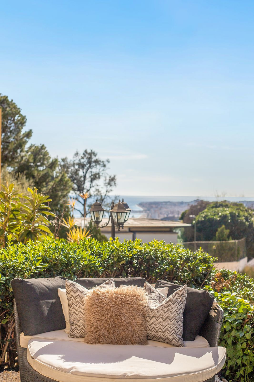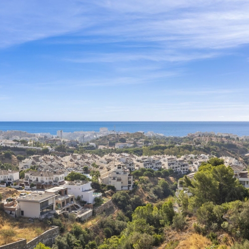 A spacious, west-facing terrace that enjoys afternoon and evening sun, with stunning views of Fuengirola.