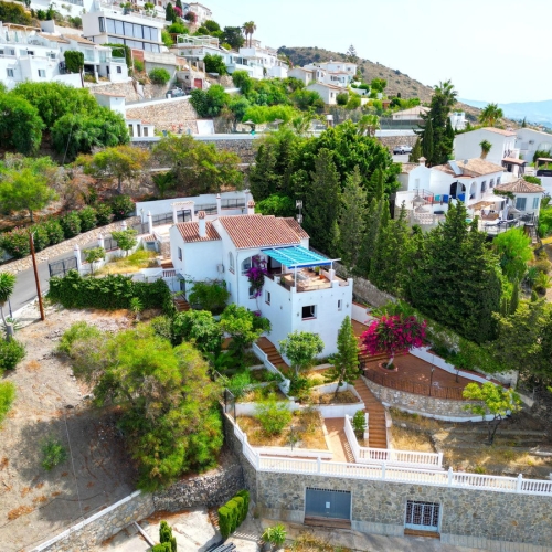Unique villa in the prestigious Monte de los Almendros urbanization in Salobreña. The property consists of 3 buildings, with several terraces and balconies decorated with bougainvilleas, a patio forming the central core of the main villa, a cozy porch and summer kitchen next to the pool area.