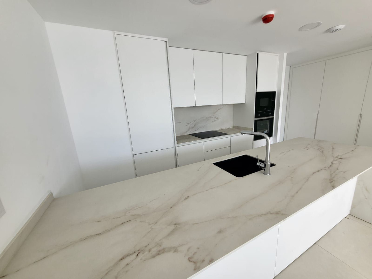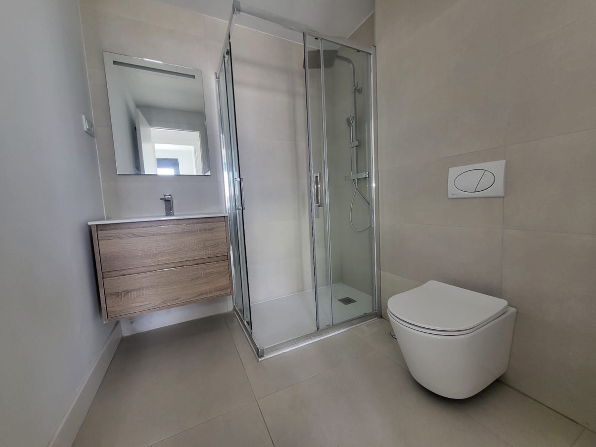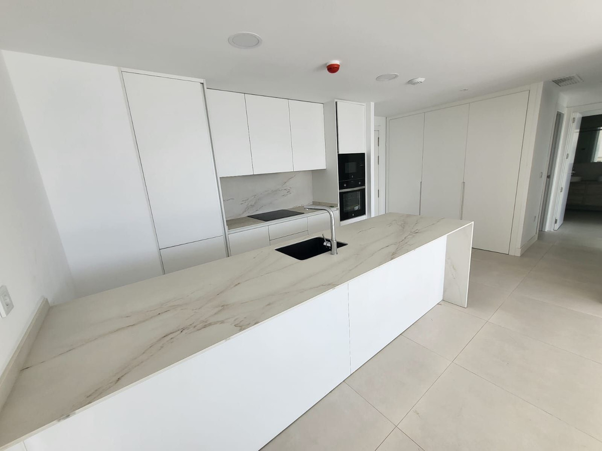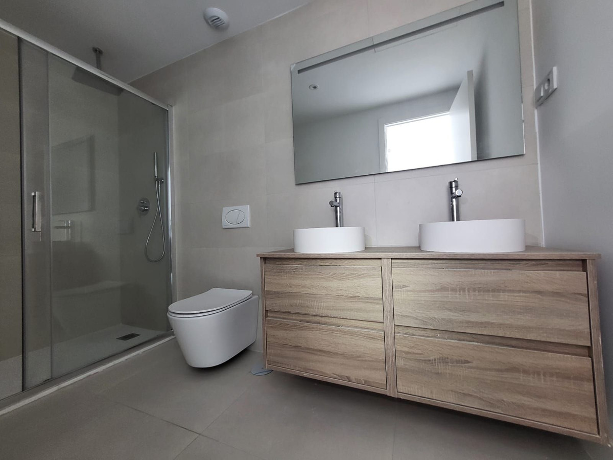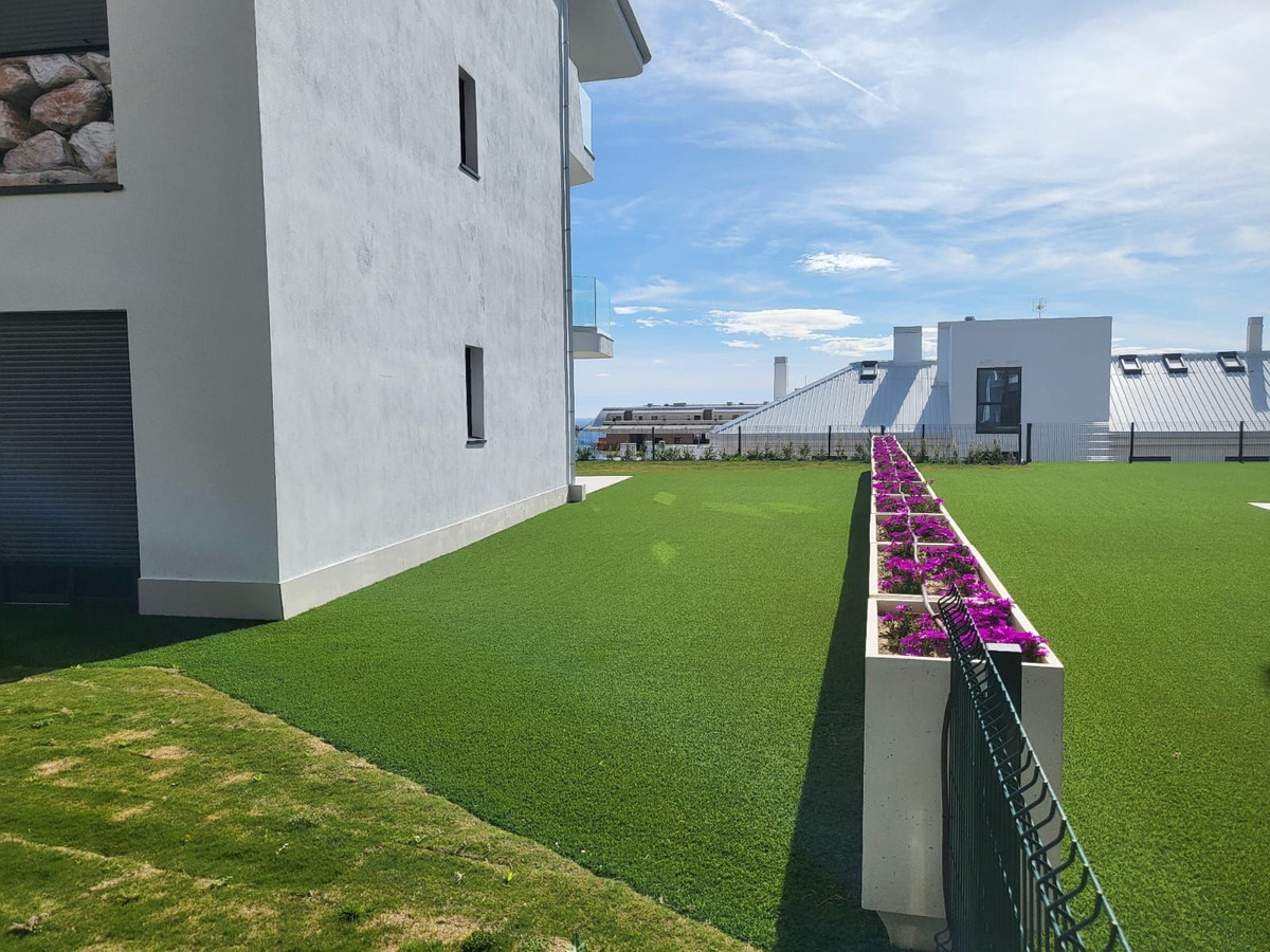 New apartment located in a new complex of 160 modern apartments in the Higueron area. The apartment has 2 bedrooms and 2 full bathrooms. The living room is bright with an open kitchen solution. From the 28 sqm terrace, there is a sea view to the southeast and a glimpse of the sea to the south. The bathrooms have underfloor heating that can be used in winter. In addition, the property is equipped with 2 private garage spaces and a storage room. The complex is within a gated area with several pools, green gardens, and various recreational areas. From the apartment, it is less than 50 meters to the pool, which has outdoor showers and toilet facilities.From the road, there is access to the garage through a gate that opens with a remote control. There is a storage room when parking. There is easy access from the garage to the apartment via stairs and an elevator.