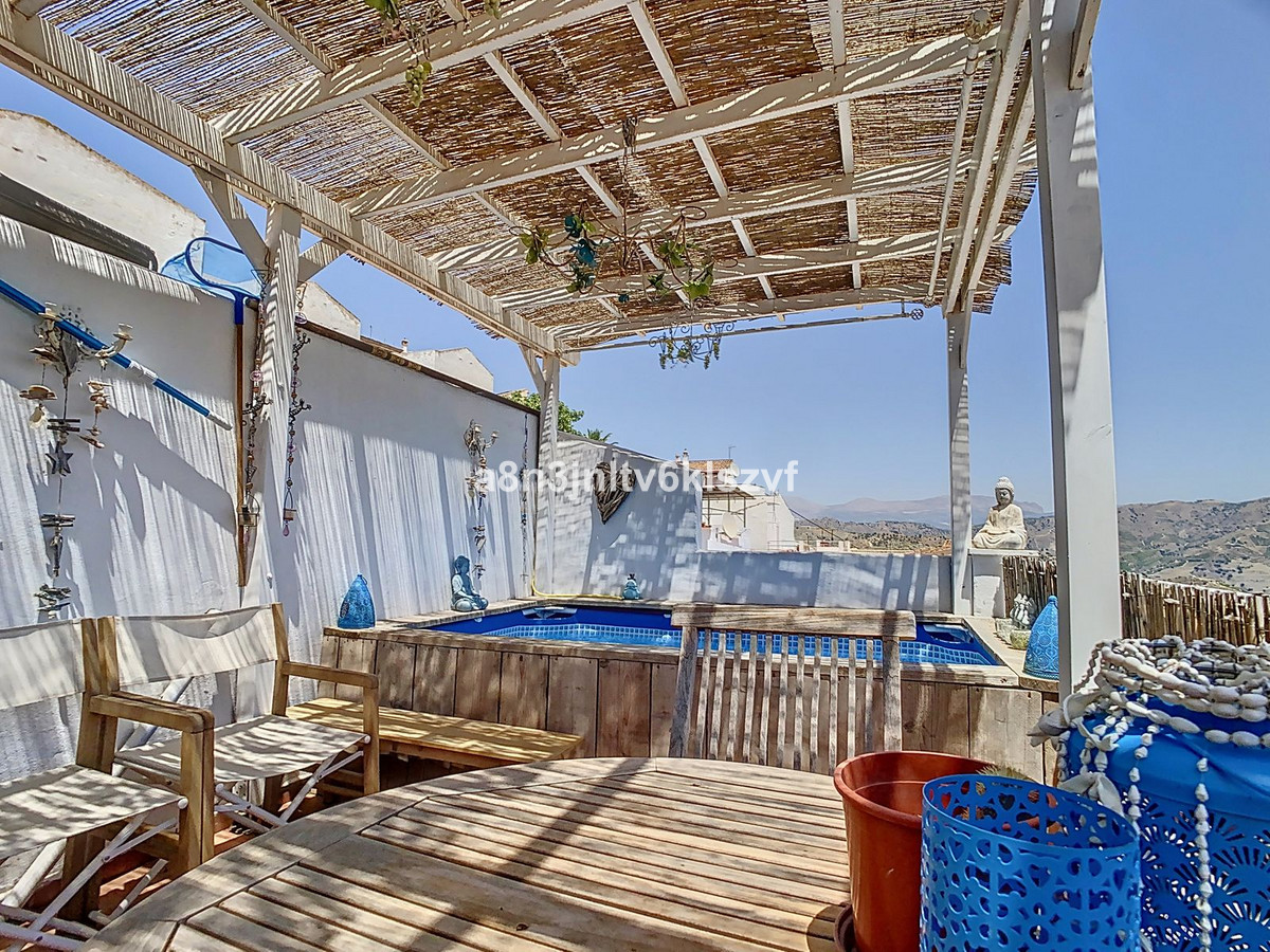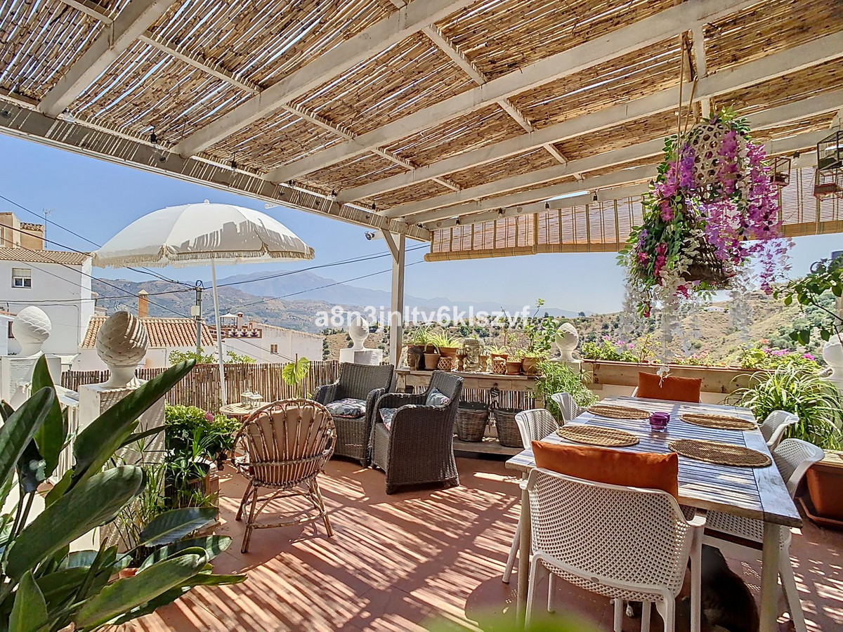 Discover this charming property, tastefully decorated in the Bali-Ibiza style, located in the picturesque village of Cutar, just a 25-minute drive from Torre del Mar. Malaga airport is a 1-hour drive away. The property underwent extensive renovation in June 2021, with significant improvements throughout. The house is minimally furnished, with only a few pieces of furniture remaining
