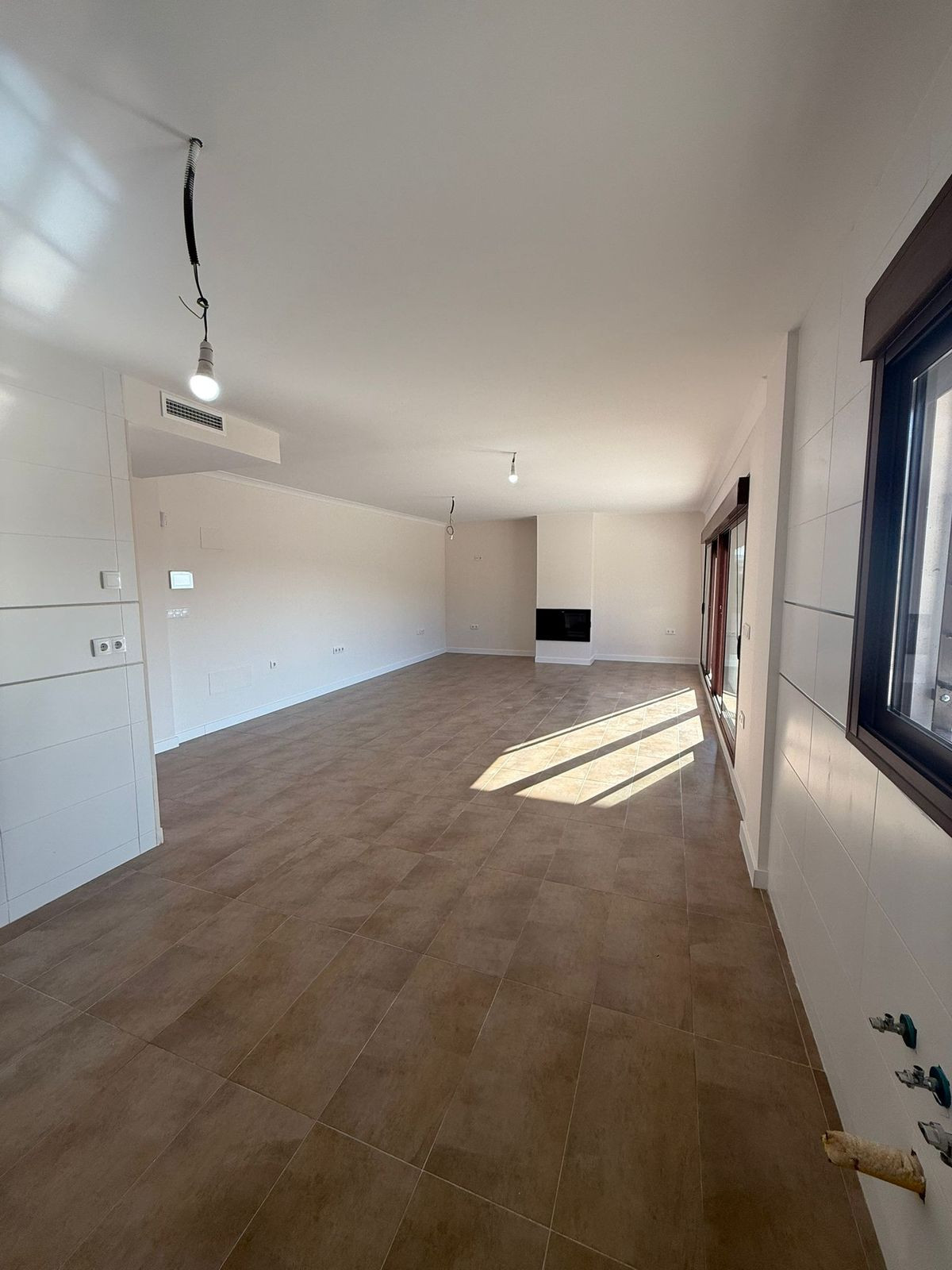 Built on a single level, the house features 4 spacious bedrooms and 3 bathrooms, making it ideal for families in need of space. The open-plan kitchen seamlessly connects to a large and cozy living room with a fireplace, creating a warm and inviting atmosphere.