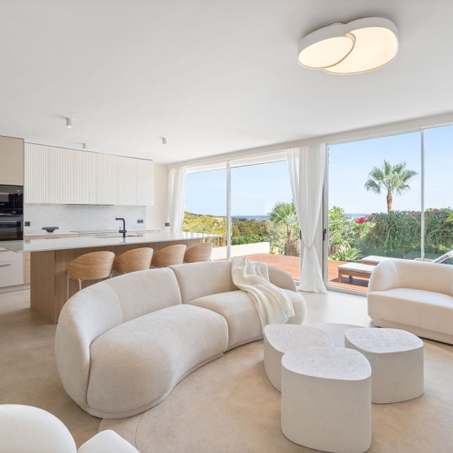 Designed with high-quality materials and a contemporary touch, the apartment features a bright and spacious open-plan living area with large windows that bring in natural light. The modern kitchen is fully equipped with premium appliances, sleek cabinetry, and ample storage. The elegant master suite includes an en-suite bathroom, built-in wardrobes, and direct access to the expansive private terrace, where you can enjoy breathtaking mountain views. Two additional stylish guest bedrooms provide comfortable living spaces with fitted wardrobes and a shared modern bathroom. Luxury finishes such as marble flooring, brand-new fixtures, hot and cold air conditioning, and double-glazed windows complete this exquisite home.