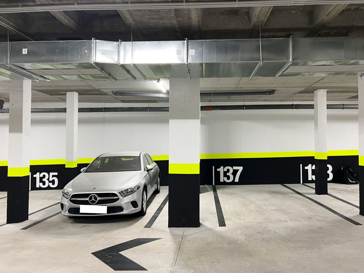 The property includes two parking spaces with direct lift access and a large storage room in the basement.