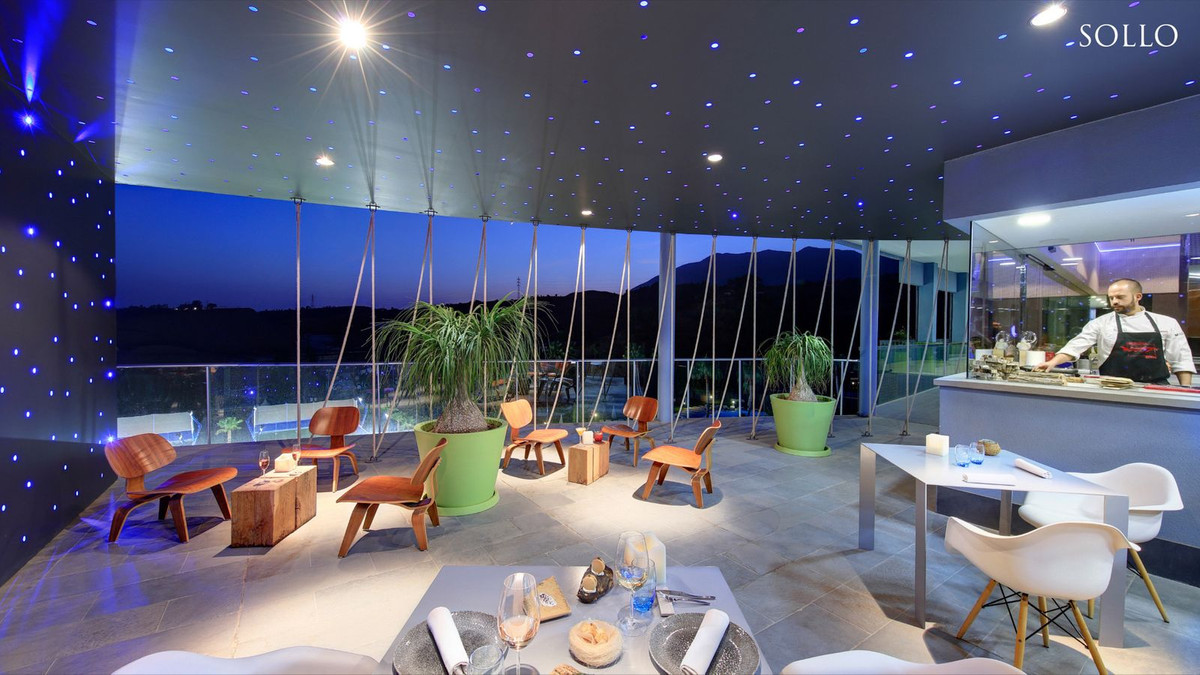 The combined dining and living area is designed for comfort and ease, whether entertaining or simply enjoying a morning coffee with Mediterranean sea views.