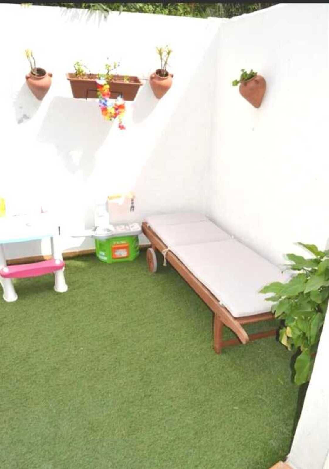 The house has 2 spacious bedrooms, both with access to a charming private balcony, and three full bathrooms, offering comfort and privacy. The kitchen, fully equipped with appliances, is perfect for food lovers.