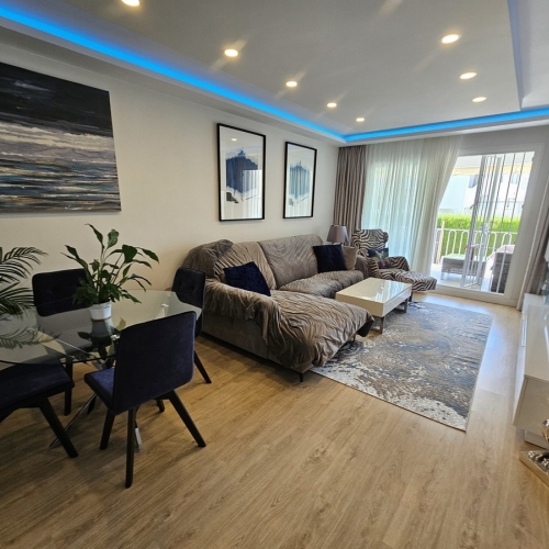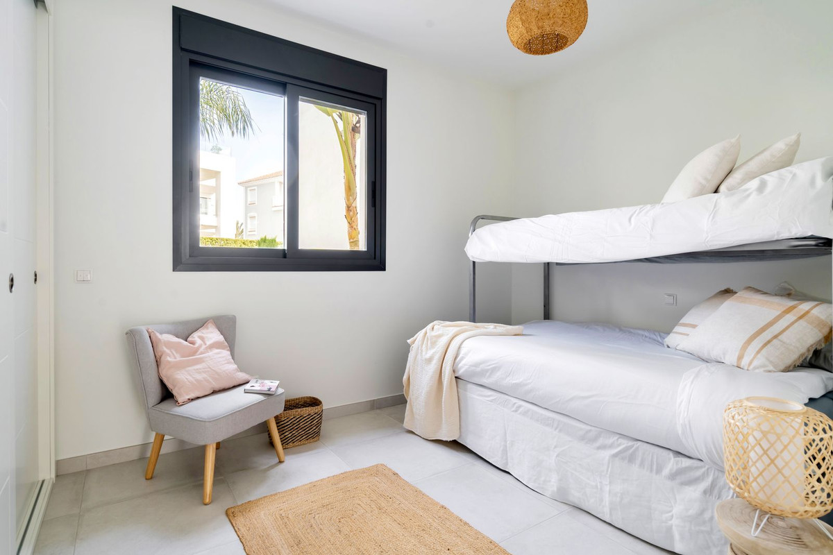 Price Reduction. From €630,000 to €595,000. This exceptional apartment, built in 2020, offers a perfect fusion of comfort and contemporary style. The home features two bedrooms and two bathrooms and is being sold fully furnished. A key highlight is the versatile, retractable glass terrace, designed to be used year-round, maximizing the home's exterior space and allowing residents to enjoy the beautiful climate in any season. Located in the exclusive Cortijo del Golf community, this property is a true symbol of quality and modern design. Its architecture is crafted to seamlessly blend with the spectacular natural surroundings, boasting a privileged and unique location. Residents benefit from a wealth of amenities, including fantastic leisure facilities and meticulously maintained green areas. The sale includes an underground parking space and a storage room, adding to the convenience and functionality of the home. This is a unique and outstanding opportunity to acquire a high-quality, modern residence in a truly exceptional setting.