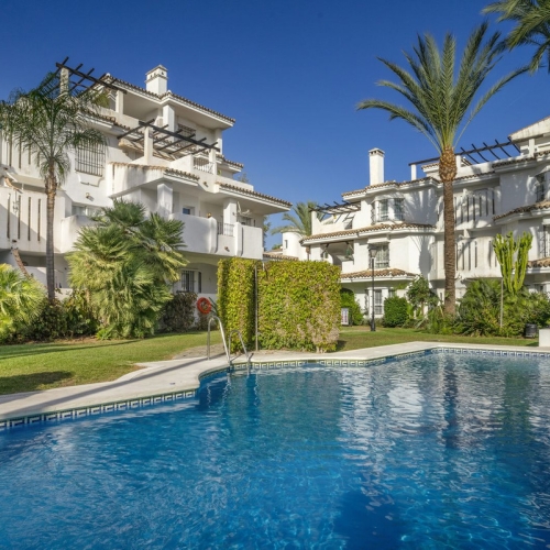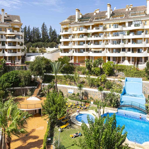 Apartment for sale in , Marbella with 2 bedrooms, 2 bathrooms, 1 on suite bathroom and with orientation south/west, with communal swimming pool, private garage and communal garden. Regarding property dimensions, it has 99 m² built and 52.4 m² terrace. Has the following facilities amenities near, transport near, air conditioning, fully fitted kitchen, storage room, barbecue, security service 24h, private terrace, sea view, mountain view, covered terrace, 24h service, electric blinds, fitted wardrobes, gated community, pool view, close to sea / beach, open plan kitchen, good condition, close to shops, close to town, close to schools and close to restaurants.