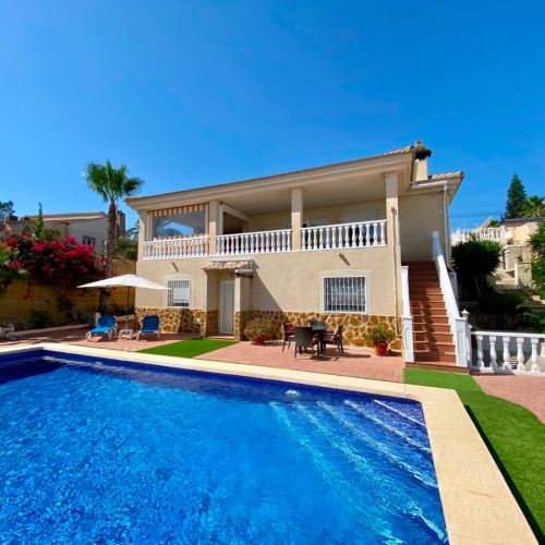 Located at the end of a cul de sac on the popular Montemar urbanisation in Algorfa is this three bedroom detached villa.