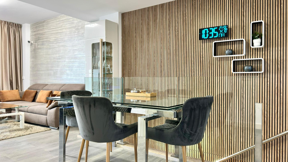 This stunning duplex offers breathtaking views of the sea, mountains, and city, inviting you into a world of comfort and elegance. This unique home, featuring two levels and independent entrances, is the perfect space for a large family or two families wishing to live together.Size and Space The duplex spans an impressive 215 m² (166 m² of usable space), providing both roominess and warmth. The independent entrances on each floor allow for flexible organization of space according to your needs.Ground Floor:- A spacious living room, ideal for family gatherings- A modern kitchen equipped with quality appliances- A bright bedroom, bathroom, and inviting garden for relaxation- A convenient laundry roomFirst Floor:- A large terrace with spectacular views- A bedroom with access to a balcony, plus additional kitchen and bathroomComplex Amenities The complex features both indoor and outdoor pools, a gym, children's playgrounds, an amphitheater, and green areas adorned with palm trees, creating an atmosphere of tranquility and privacy.Ideal Location The beaches of Poniente and La Cala, the La Marina shopping center, as well as Terra Natura Zoo and Aqua Natura water park, are just minutes away by car. Alicante Airport is only 50 km away.This duplex represents a unique opportunity to own an exceptional home in one of the most attractive neighborhoods in Benidorm.