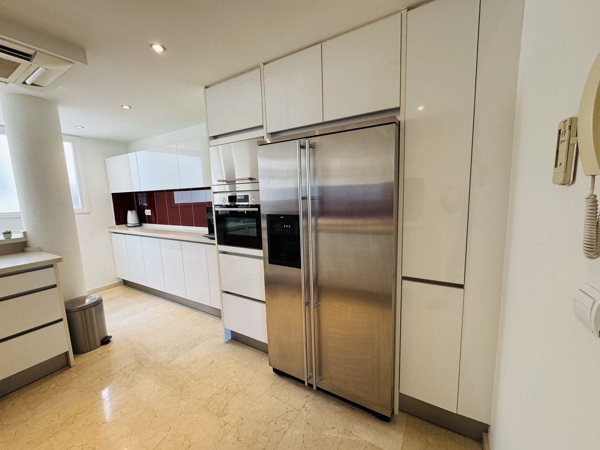 The master bedroom has a dressing room and ensuite bathroom, while the other two bedrooms offer sea views and built-in wardrobes. The bathrooms are equipped with a shower and bathtub for your comfort. A large closed garage of 46.41 m2 valued in 100.000€ is included in the price.
