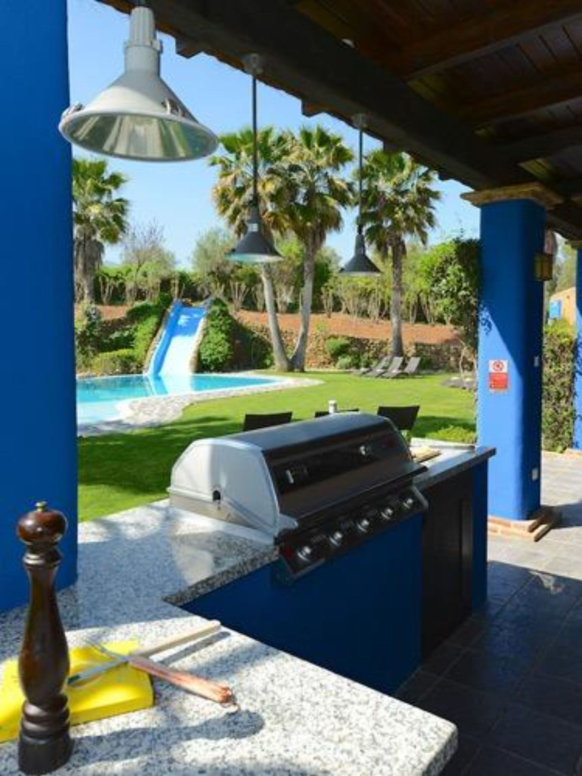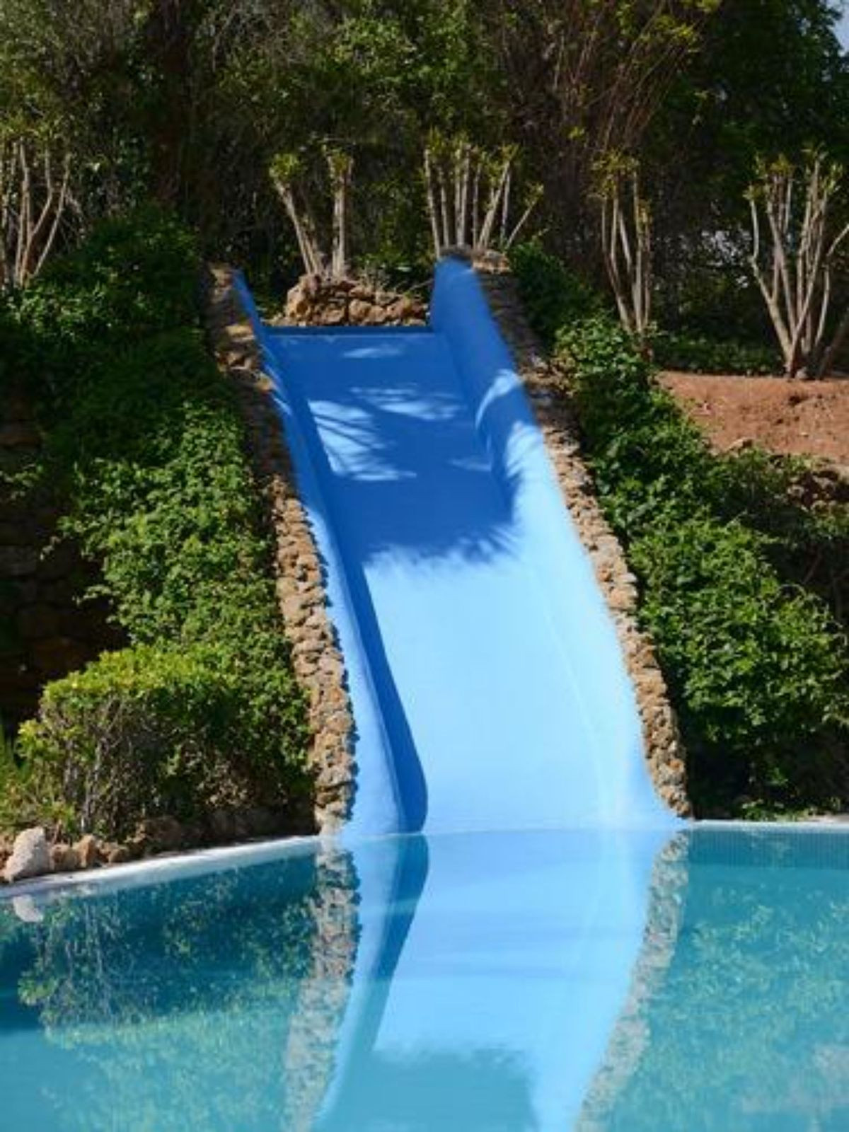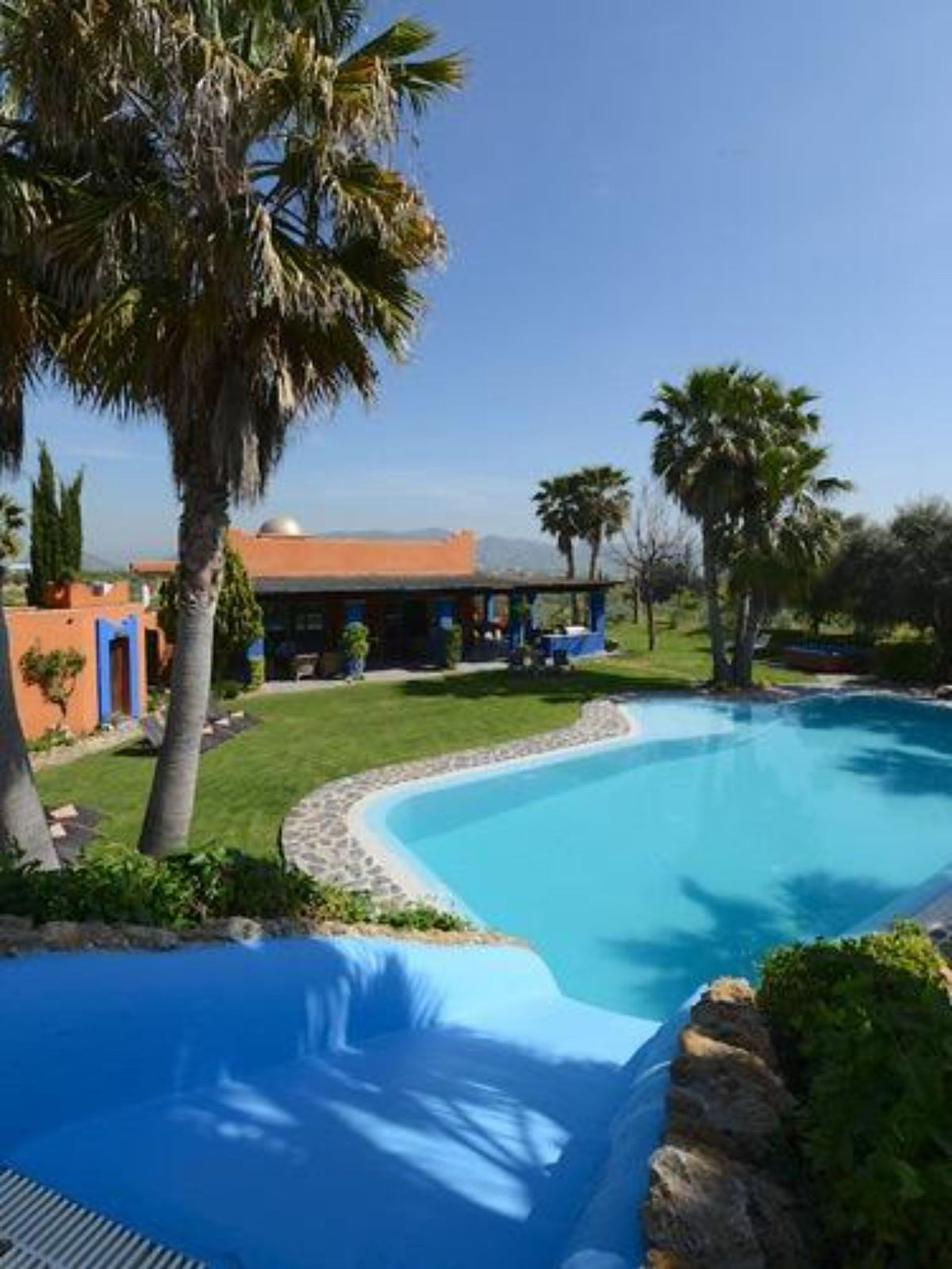 On the same level as the lounge is the large master air-conditioned bedroom which has views across the olive groves. This bedroom also has direct access to the terraces & pool areas. Next to the master bedroom we have a lovely a twin bedroom. Downstairs we have 6 bedrooms all benefit from air-conditioning (3 x twins, 2 of which have an en suite bath and separate walk-in shower room and 3 x doubles with en suite walk-in shower).What makes this property extra special is the outside area. the pool which is directly in front of the veranda is incredible and has its own water-slide built into the tropical garden. The house is surrounded by a large covered terrace which in the summer acts as an alfresco living room plus a modern BBQ also situated close to the pool. Finally we have to mention the The Moroccan Suite: This lovely Moroccan just a few meters from the main house and overlooks the pool & gardens. This air-conditioned room has a double bed with a en suite walk-in shower room. Also plenty of space for parking and majestic driveway to the entrance of the property. A unique property not to be missed.