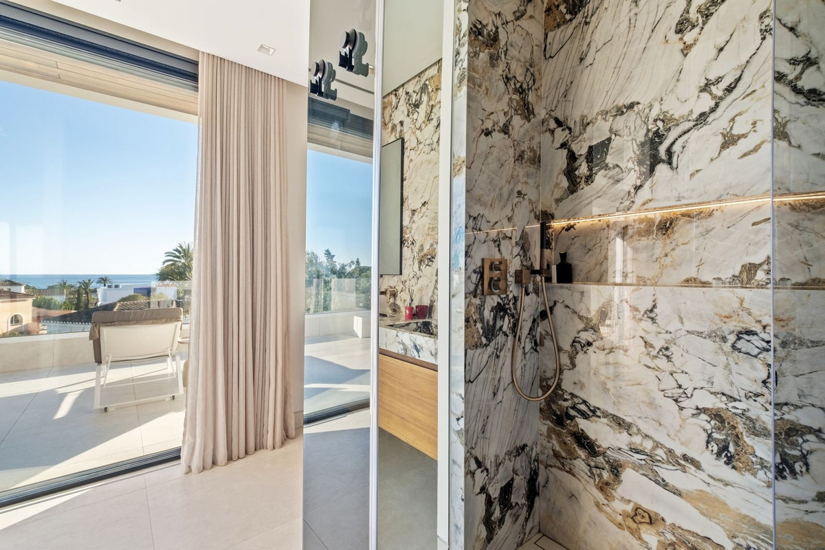 Located in the prestigious Marbesa area, just steps from the beach, this villa redefines the concept of luxury by the sea. This exceptional property offers contemporary architecture and premium finishes, featuring a spacious 227m² living area, a covered terrace of 44m², seamlessly extending into the garden, a 31m² first-floor terrace with stunning sea views, and a 65m² rooftop terrace complete with a luxurious jacuzzi. This provides the perfect outdoor space for year-round enjoyment. An unparalleled opportunity for those in search of a refined, functional home that combines modern elegance with comfort.