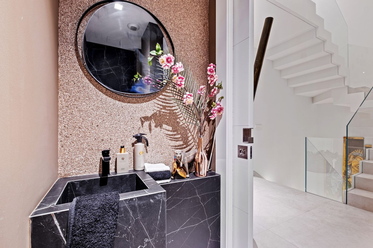 Boasting 4 spacious bedrooms and 5.5 bathrooms and fitness and relax room, this residence has been designed to maximize comfort and elegance. The upper floor features the master suite, with an open-concept bathroom and direct access to an impressive private solarium with a Jacuzzi, perfect for enjoying Mediterranean sunsets.