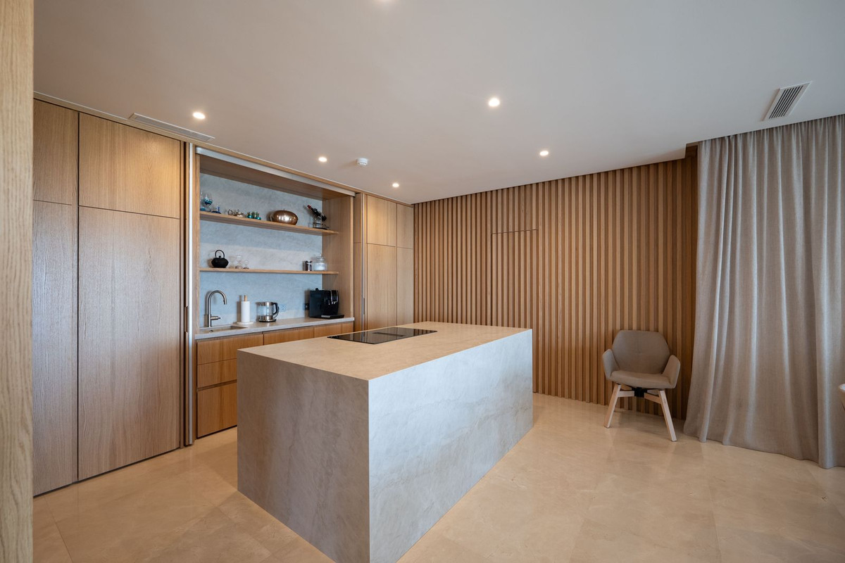 The spacious estate has an elegant living room with a fireplace and panoramic windows, as well as expansive terraces perfect for outdoor relaxation. A heated infinity pool, jacuzzi, and well-designed lounge areas allow you to fully embrace the Mediterranean lifestyle.