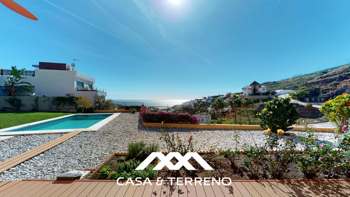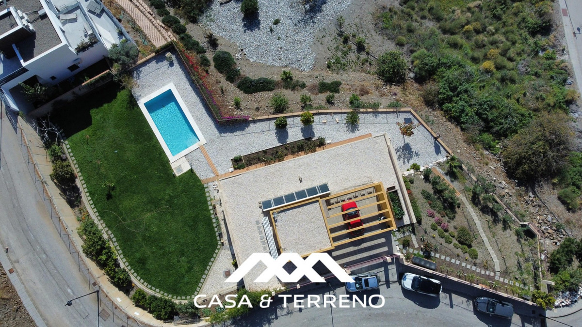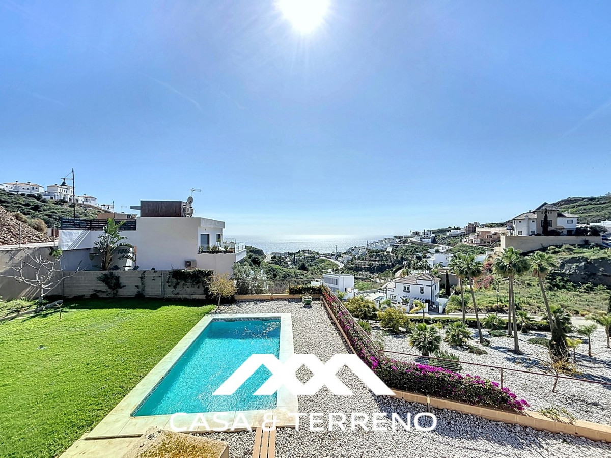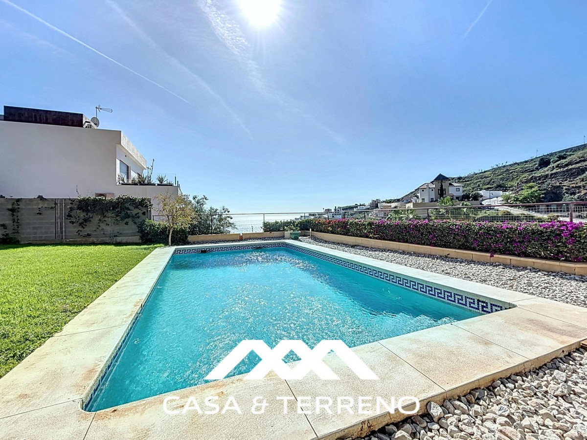 This luxurious Mediterranean villa in Torrox, Málaga, is spread across two floors and offers breathtaking sea views. The property is designed with sustainability in mind and is a true zero-energy home, maintaining a comfortable temperature year-round thanks to its high-quality insulation and comfort ventilation system. Solar panels further enhance its energy efficiency. The main floor features an open-plan living area with a sleek and modern kitchen, equipped with light-colored cabinetry and integrated appliances. The spacious living room is bright and airy, seamlessly blending indoor and outdoor spaces through large glass doors that open onto a sun-drenched terrace. This terrace offers stunning panoramic views of the sea and surrounding landscape and includes a private swimming pool, making it an ideal spot for al fresco dining and relaxation. The villa boasts three well-appointed bedrooms, including a master suite with an en-suite bathroom. The additional two bedrooms share a stylishly designed bathroom with contemporary fixtures, such as walk-in showers and floating vanities. An office space with built-in storage provides a dedicated area for work or study. A standout feature of the home is its accessibility. A lift connects both floors, ensuring comfort and convenience for all residents. The villa also includes ample storage solutions, with built-in wardrobes in the bedrooms and additional organized spaces throughout the house. Outside, the landscaped garden enhances the Mediterranean ambiance, offering a serene retreat. A carport provides secure parking. The property sits on two building plots, offering the possibility to construct additional structures if desired. Designed by the current owner, this villa incorporates unique architectural elements and thoughtful details that set it apart. Combining Mediterranean charm with modern sustainability, this home is a perfect sanctuary in the heart of the Costa del Sol. We are pleased to be able to present this dream property to you soon, either personally or via virtual viewing. Because this world is unique - just like our Axarquía. In Andalusia. On the Costa del Sol. Here, on the sunny side of life...