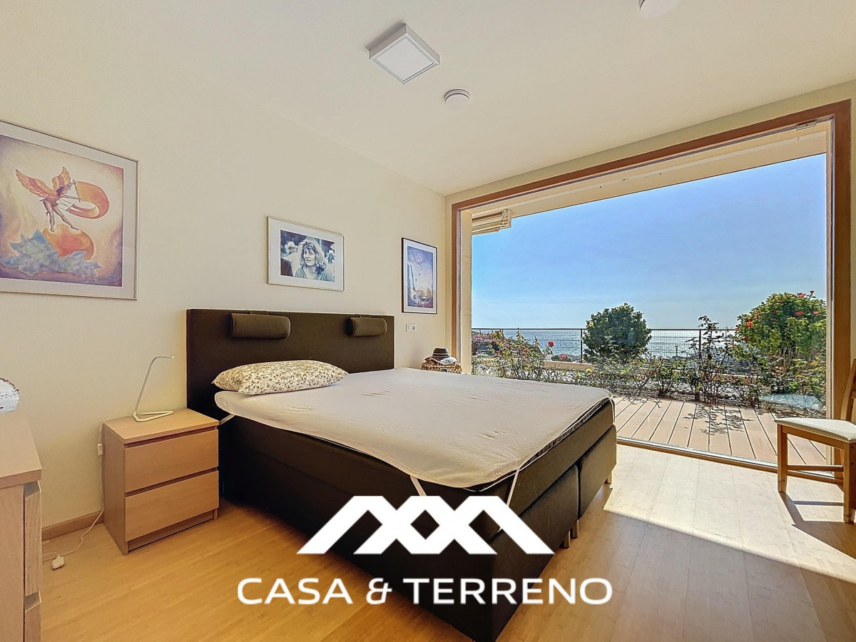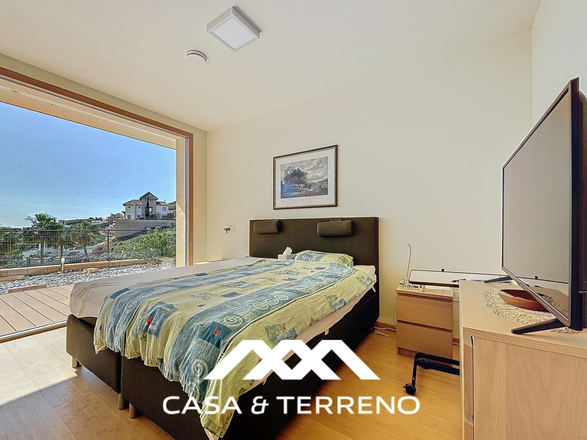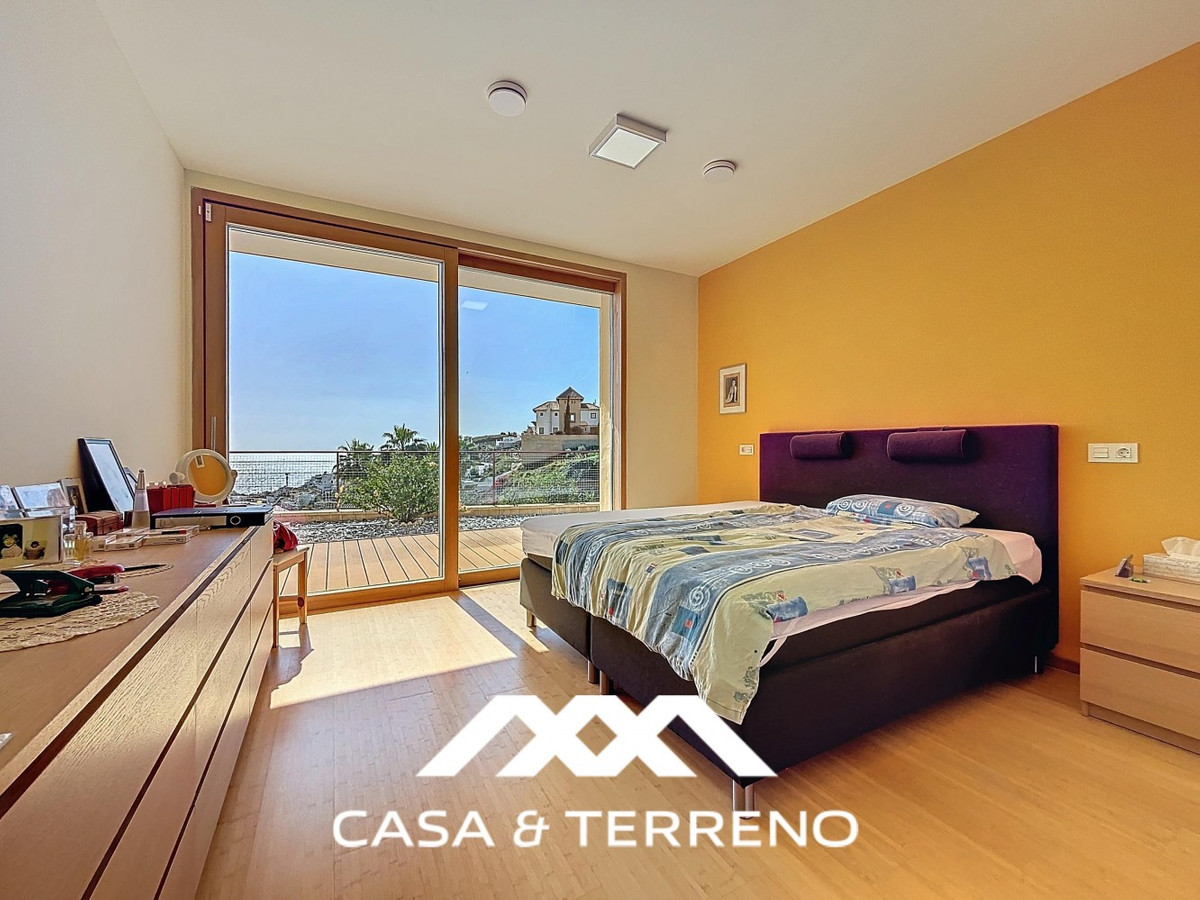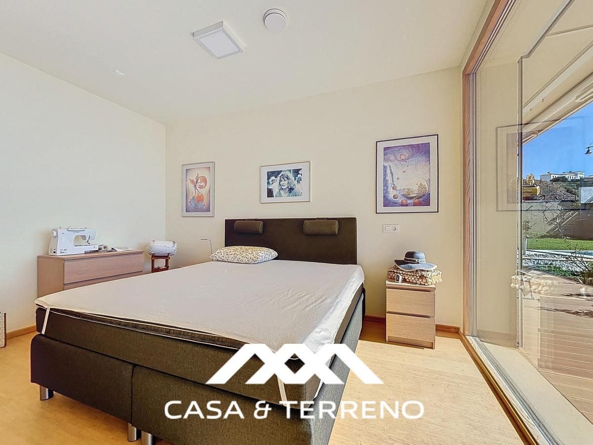 This luxurious Mediterranean villa in Torrox, Málaga, is spread across two floors and offers breathtaking sea views. The property is designed with sustainability in mind and is a true zero-energy home, maintaining a comfortable temperature year-round thanks to its high-quality insulation and comfort ventilation system. Solar panels further enhance its energy efficiency. The main floor features an open-plan living area with a sleek and modern kitchen, equipped with light-colored cabinetry and integrated appliances. The spacious living room is bright and airy, seamlessly blending indoor and outdoor spaces through large glass doors that open onto a sun-drenched terrace. This terrace offers stunning panoramic views of the sea and surrounding landscape and includes a private swimming pool, making it an ideal spot for al fresco dining and relaxation. The villa boasts three well-appointed bedrooms, including a master suite with an en-suite bathroom. The additional two bedrooms share a stylishly designed bathroom with contemporary fixtures, such as walk-in showers and floating vanities. An office space with built-in storage provides a dedicated area for work or study. A standout feature of the home is its accessibility. A lift connects both floors, ensuring comfort and convenience for all residents. The villa also includes ample storage solutions, with built-in wardrobes in the bedrooms and additional organized spaces throughout the house. Outside, the landscaped garden enhances the Mediterranean ambiance, offering a serene retreat. A carport provides secure parking. The property sits on two building plots, offering the possibility to construct additional structures if desired. Designed by the current owner, this villa incorporates unique architectural elements and thoughtful details that set it apart. Combining Mediterranean charm with modern sustainability, this home is a perfect sanctuary in the heart of the Costa del Sol. We are pleased to be able to present this dream property to you soon, either personally or via virtual viewing. Because this world is unique - just like our Axarquía. In Andalusia. On the Costa del Sol. Here, on the sunny side of life...