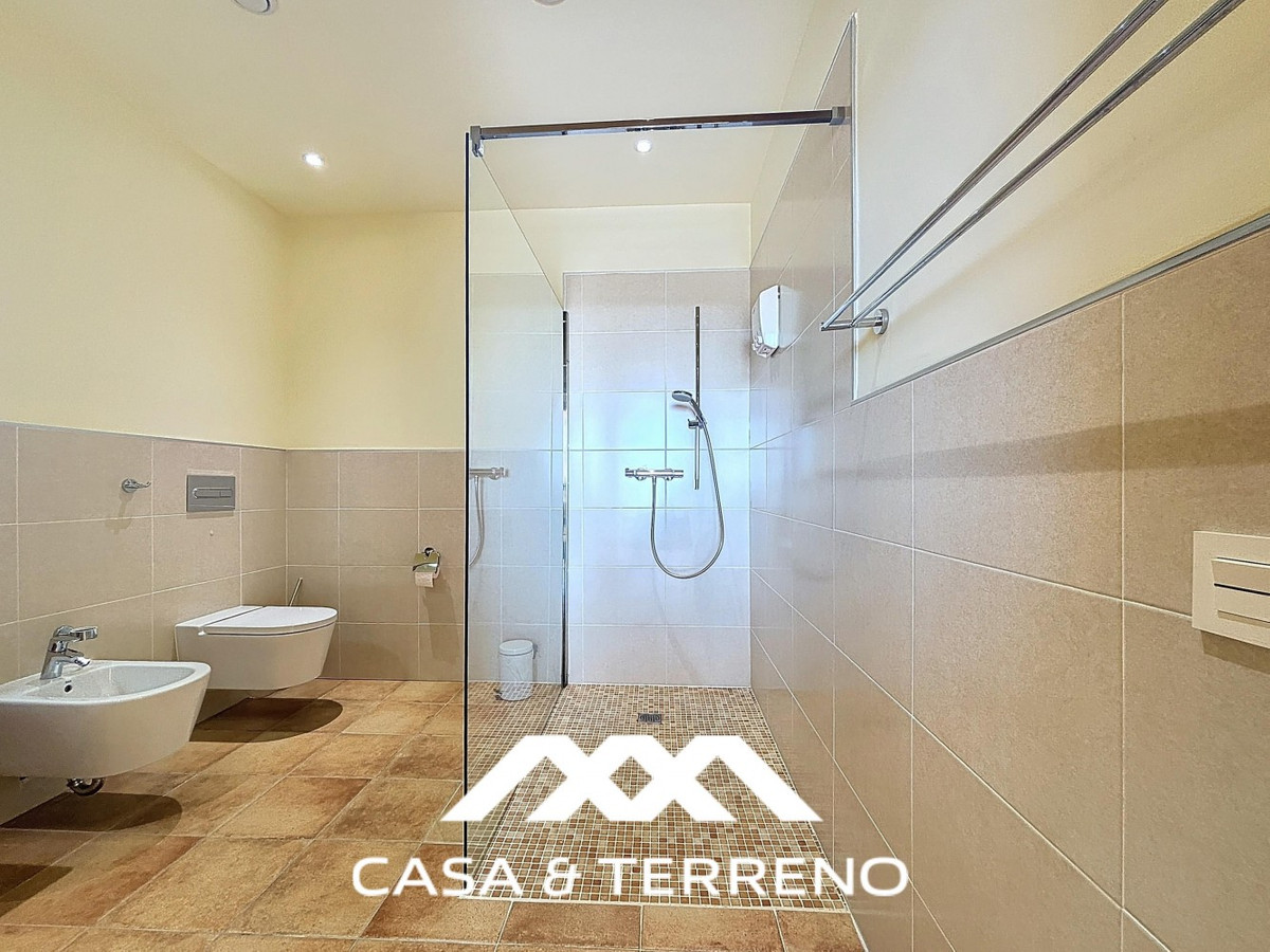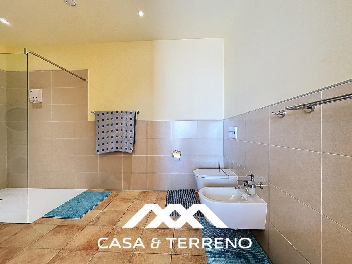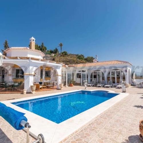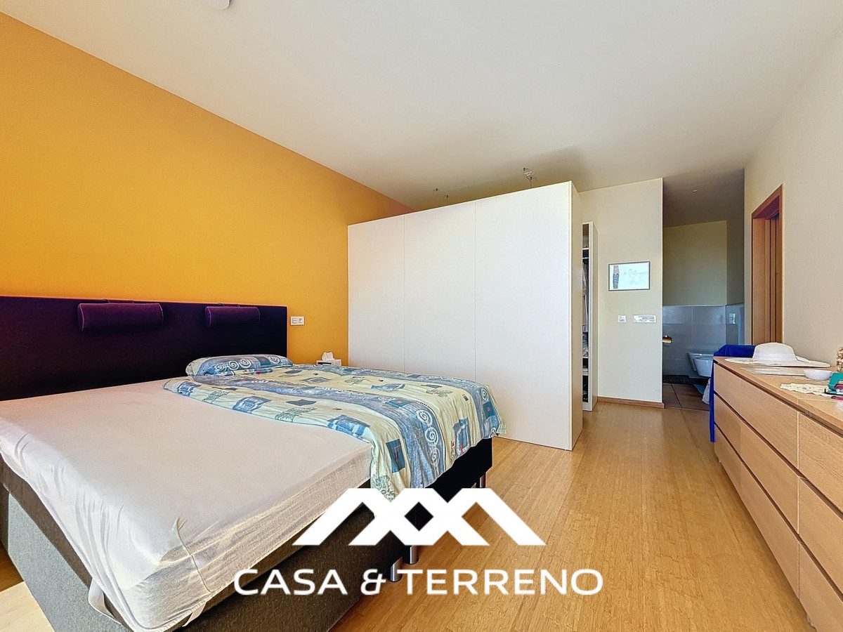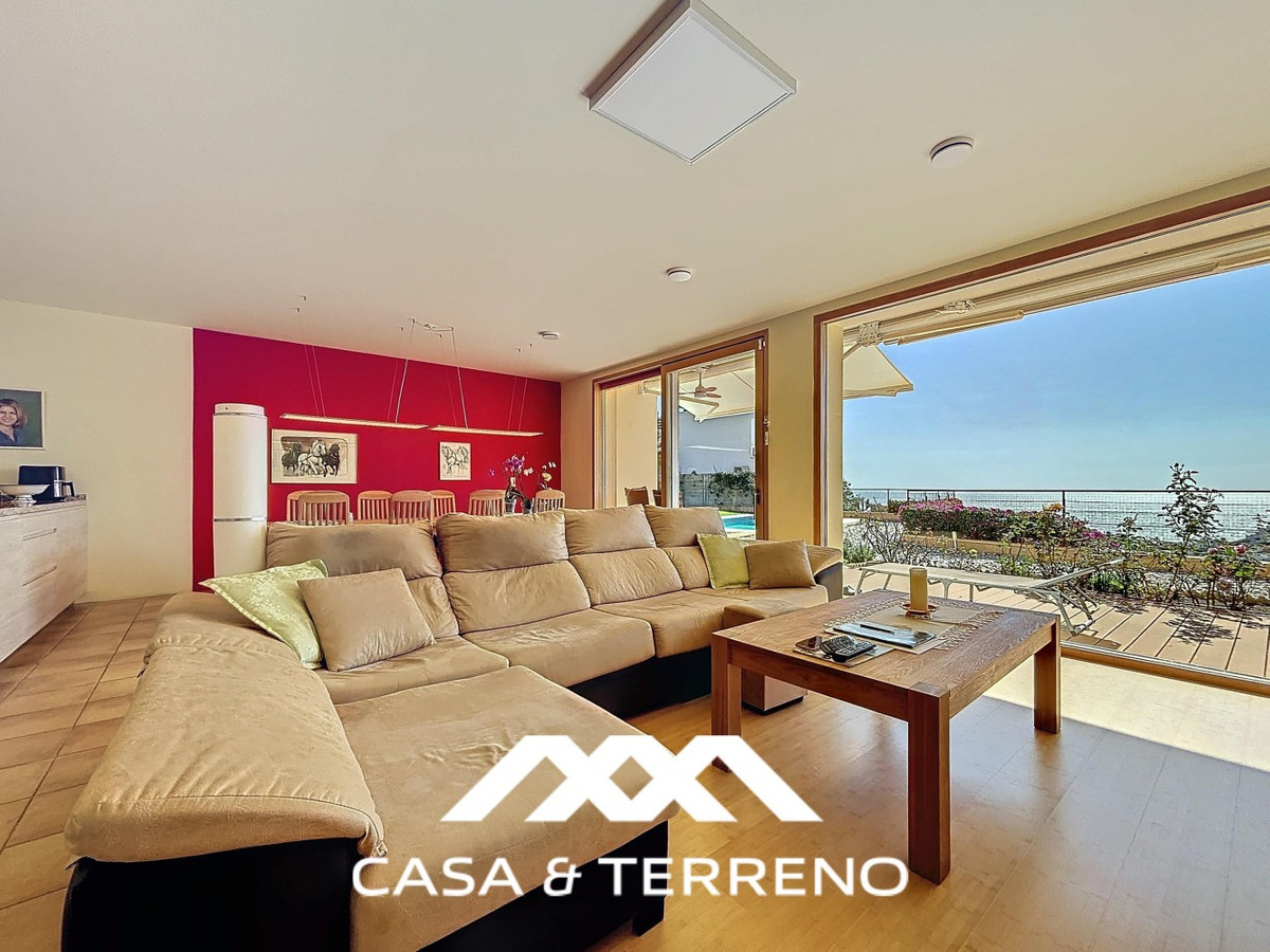 This luxurious Mediterranean villa in Torrox, Málaga, is spread across two floors and offers breathtaking sea views. The property is designed with sustainability in mind and is a true zero-energy home, maintaining a comfortable temperature year-round thanks to its high-quality insulation and comfort ventilation system. Solar panels further enhance its energy efficiency. The main floor features an open-plan living area with a sleek and modern kitchen, equipped with light-colored cabinetry and integrated appliances. The spacious living room is bright and airy, seamlessly blending indoor and outdoor spaces through large glass doors that open onto a sun-drenched terrace. This terrace offers stunning panoramic views of the sea and surrounding landscape and includes a private swimming pool, making it an ideal spot for al fresco dining and relaxation. The villa boasts three well-appointed bedrooms, including a master suite with an en-suite bathroom. The additional two bedrooms share a stylishly designed bathroom with contemporary fixtures, such as walk-in showers and floating vanities. An office space with built-in storage provides a dedicated area for work or study. A standout feature of the home is its accessibility. A lift connects both floors, ensuring comfort and convenience for all residents. The villa also includes ample storage solutions, with built-in wardrobes in the bedrooms and additional organized spaces throughout the house. Outside, the landscaped garden enhances the Mediterranean ambiance, offering a serene retreat. A carport provides secure parking. The property sits on two building plots, offering the possibility to construct additional structures if desired. Designed by the current owner, this villa incorporates unique architectural elements and thoughtful details that set it apart. Combining Mediterranean charm with modern sustainability, this home is a perfect sanctuary in the heart of the Costa del Sol. We are pleased to be able to present this dream property to you soon, either personally or via virtual viewing. Because this world is unique - just like our Axarquía. In Andalusia. On the Costa del Sol. Here, on the sunny side of life...