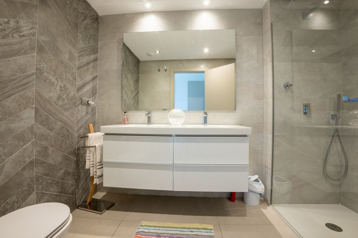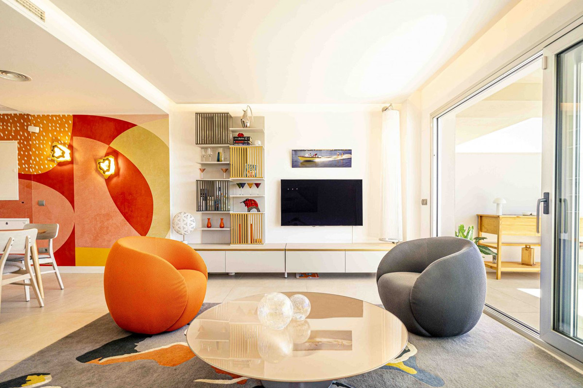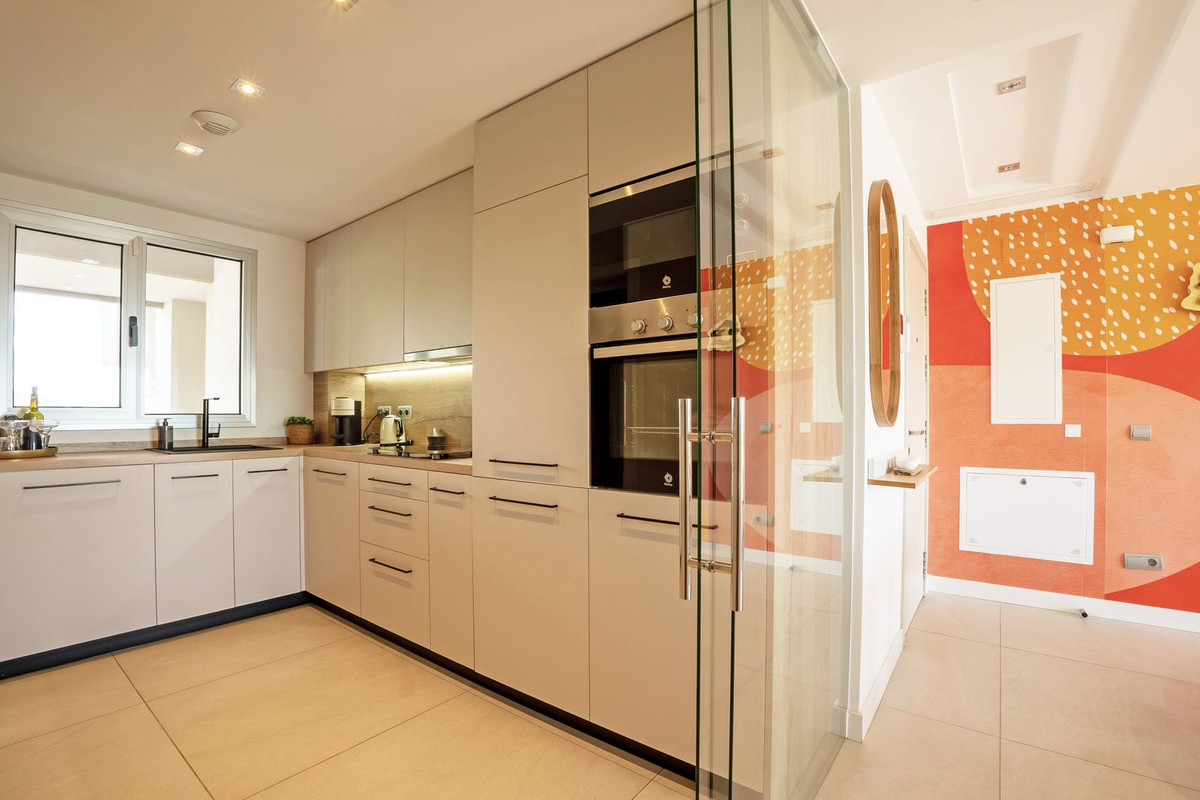 The spacious master suite boasts a luxurious en-suite bathroom and direct access to the south-facing terrace, allowing you to wake up to stunning views every day. The generously sized second bedroom also enjoys, floor-to-ceiling wardrobes with cleverly designed internal storage drawers, maximizing space and organization.
