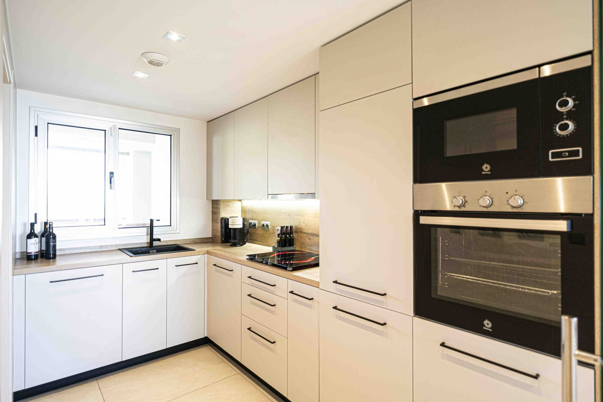 The fully fitted modern kitchen offers breathtaking mountain views and is complemented by a separate laundry/utility room. A standout feature of this property is its private garage, a rare and valuable addition that sets this apartment apart. For ultimate ease and convenience, an elevator takes you directly from the garage to your front door.