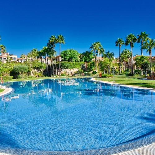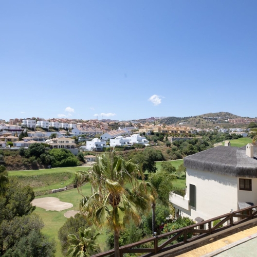 Villa for sale in Riviera del Sol, Mijas Costa with 4 bedrooms, 3 bathrooms and south/west facing, with communal swimming pool, private garage (1 beds) and communal garden. Regarding the dimensions, the property has 165 m2 built, 120 m2 of plot, 120 m2 inside and 20 m2 of terrace. It has the following characteristics nearby services, air conditioning, fully equipped kitchen, security entrance, double glass, videoporter, 24h security service, private terrace, equipped kitchen, living room, sea view, laundry room, internet - wi-fi, covered terrace, 24 hours service, gated community, unfurnished, near beach / sea, close to golf, American kitchen, excellent state, shops near, close to town, colleges, close door.