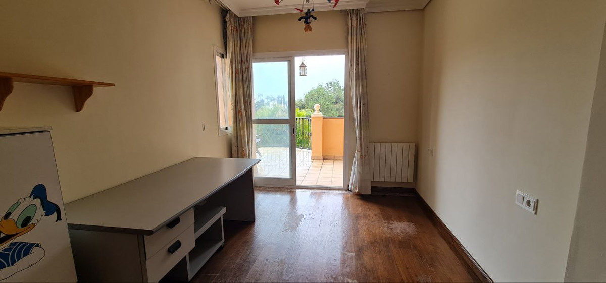 On the upper floor, where the entrance is located, there is a master bedroom with fitted wardrobes and access to a private terrace. It also has three additional bedrooms, one of them with en-suite bathroom and built-in wardrobe, while the other two share a large terrace with beautiful views. There is also an office space that can be converted into an extra bedroom if required.