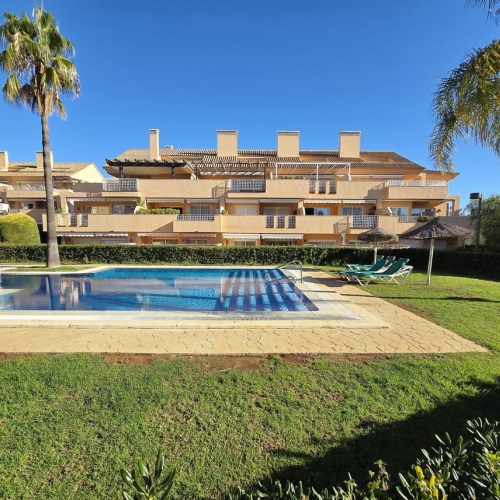 Set in a well-maintained urbanisation surrounded by lush gardens and mature trees, the complex features three communal swimming pools—the largest of which is directly in front of the apartment and visible from the kitchen.