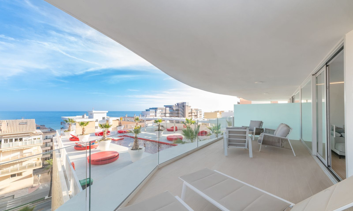 Designed with avant-garde architecture and a sense of space has been created with curved walls and windows opening out to the sea and stretching from floor to ceiling. This apartment is a quality home with an energy certification A.