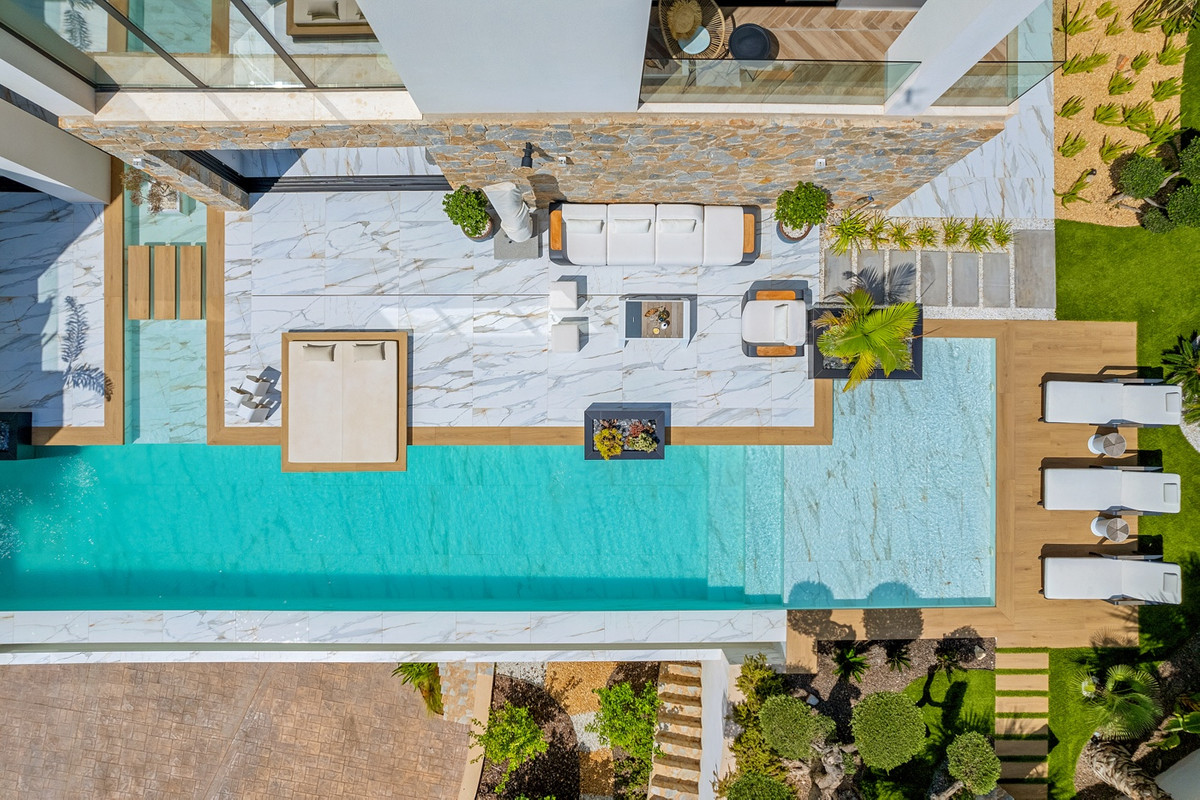 Welcome to a Prestigious Villa in Las ColinasThis exceptional villa, located in one of the most exclusive communities, offers a unique blend of luxury, comfort, and modern design.Grand Entrance & Serene GardenSpacious driveway leading to a beautifully manicured gardenMagnificent bonsai tree at the entrance, adding tranquility and eleganceSophisticated Ground FloorOpen-Concept Layout: Kitchen, dining, and living areas seamlessly flow together, perfect for entertaining or relaxation.Luxurious Marble Floors: The grandeur of marble throughout the ground floor sets a sophisticated tone.Natural Light: Floor-to-ceiling windows flood the rooms with light, blending indoor and outdoor living.Stunning Pool: A winding pool integrated into the architecture creates a serene and luxurious atmosphere.Private Bedroom & En-SuiteGround Floor: A spacious double bedroom with an en-suite bathroom.Breathtaking Views: Enjoy stunning views of the landscaped garden and pool deck.Master Suite: An Oasis of ComfortFirst Floor: The master bedroom includes an en-suite bathroom, walk-in wardrobe, and a free-standing bath illuminated by soft lighting.Private Terrace: Enjoy panoramic views of the surrounding area, the perfect spot for morning coffee or evening reflection.Roof Terrace: Your Private SanctuaryBreathtaking Views: The rooftop terrace offers 360-degree views of the surroundings.Hot Tub: Relax in your own private hot tub or soak up the sun in this perfect space for both relaxation and entertaining.Additional Bedroom & Private TerraceA spacious bedroom with a private terrace overlooking the pool and garden ensures a peaceful retreat for guests.Unrivaled Luxury & DesignThis prestigious villa is one of the most exclusive properties in the area, offering an unparalleled combination of:LuxuryPrivacyContemporary DesignWe invite you to schedule a private viewing and discover the unique charm and sophistication of this exceptional villa in Las Colinas.