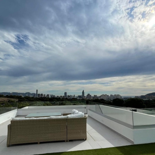 ???? Villa with sea views in Balcon de FinestratSemi-new semi-detached villa in Balcón de Finestrat – a luxury home in one of the most prestigious and safe areas ???? of the Costa Blanca, just 3 km from Benidorm's Poniente beach ????️.This spectacular property offers 150m² of living space on a large 400m² plot, designed to enjoy maximum comfort and quality of life. With a modern style and high-quality materials, this villa combines elegance, energy efficiency and a privileged environment.???? Functional and spacious layout:✔️ 2 floors with contemporary design and top quality finishes ????️✨✔️ 3 bedrooms ????️, the main one with an en-suite bathroom ???? for greater privacy✔️ 2 full bathrooms with modern and elegant finishes ????✔️ Large living-dining room with fully equipped open kitchen ????️????, perfect for sharing unforgettable moments✔️ Large terrace and private garden ???????? with rest and leisure areas✔️ Heated pool ????♂️ to enjoy all year round✔️ Parking space on the plot itself ???????????? Stunning views of the sea and the mountains ⛰️????, a natural environment that guarantees peace and exclusivity.???? High energy efficiency (A certification) ????✅ thanks to the latest technology in construction:✔️ Aerothermal system ♻️ for efficient consumption✔️ Air conditioning ❄️ to guarantee maximum comfort✔️ High-end appliances ???? with an elegant and functional design???? Located in Balcón de Finestrat, a high-end area surrounded exclusively by new homes ????️, which guarantees security, tranquility and exclusivity. In addition, it is just a few minutes from golf courses ????️, shopping centers ????️, restaurants ????️ and essential services.???? Benidorm and its surroundings are in high demand ???????? due to its climate, quality of life and investment opportunities. Don't miss the opportunity to live in one of the best residential areas of the Costa Blanca ????????.