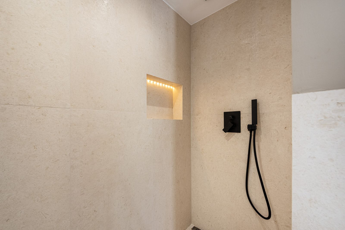 The tasteful kitchen is equipped with modern appliances and offers plenty of work space, while the light floors, stylish material choices and harmonious color scheme create a pleasant and inviting atmosphere. The spacious bedrooms offer good storage options, while both bathrooms are luxuriously decorated with carefully selected details.