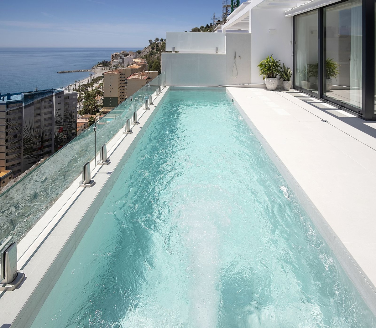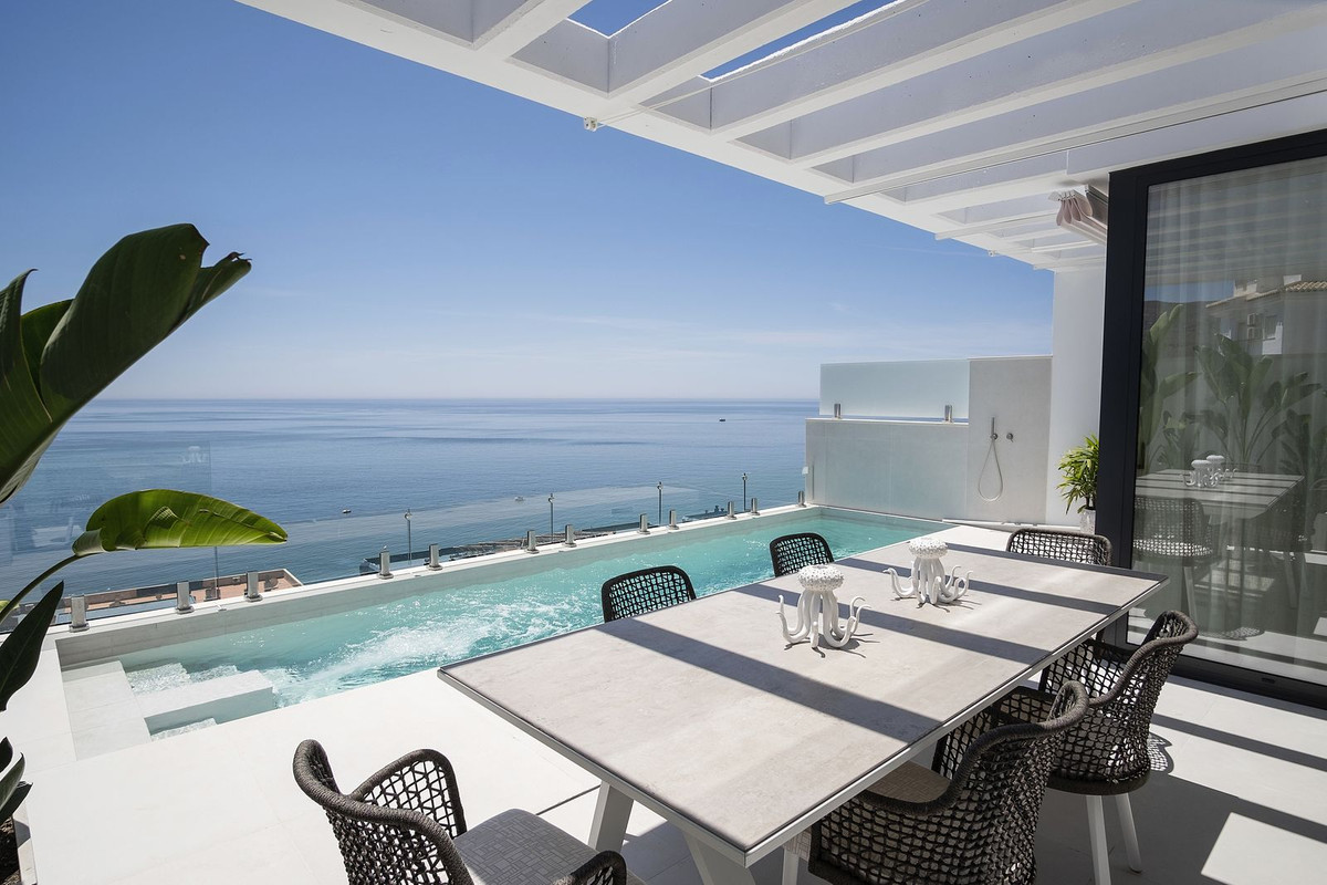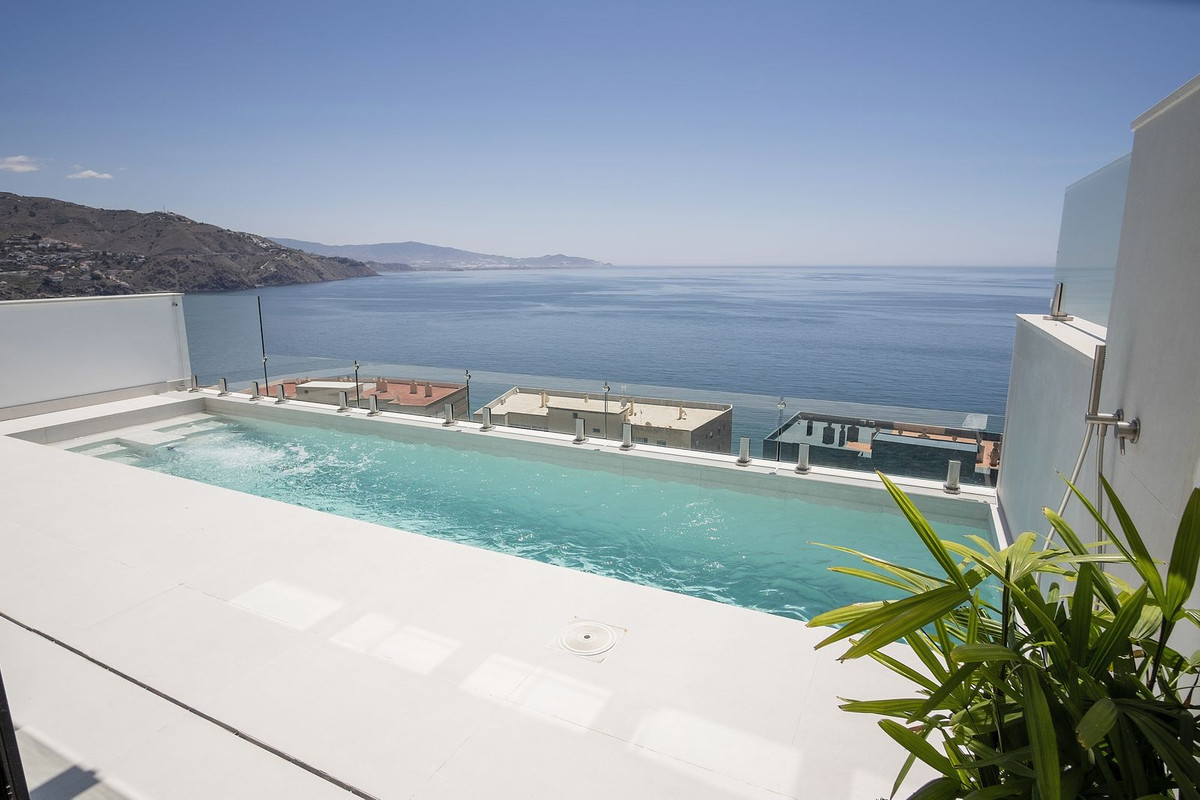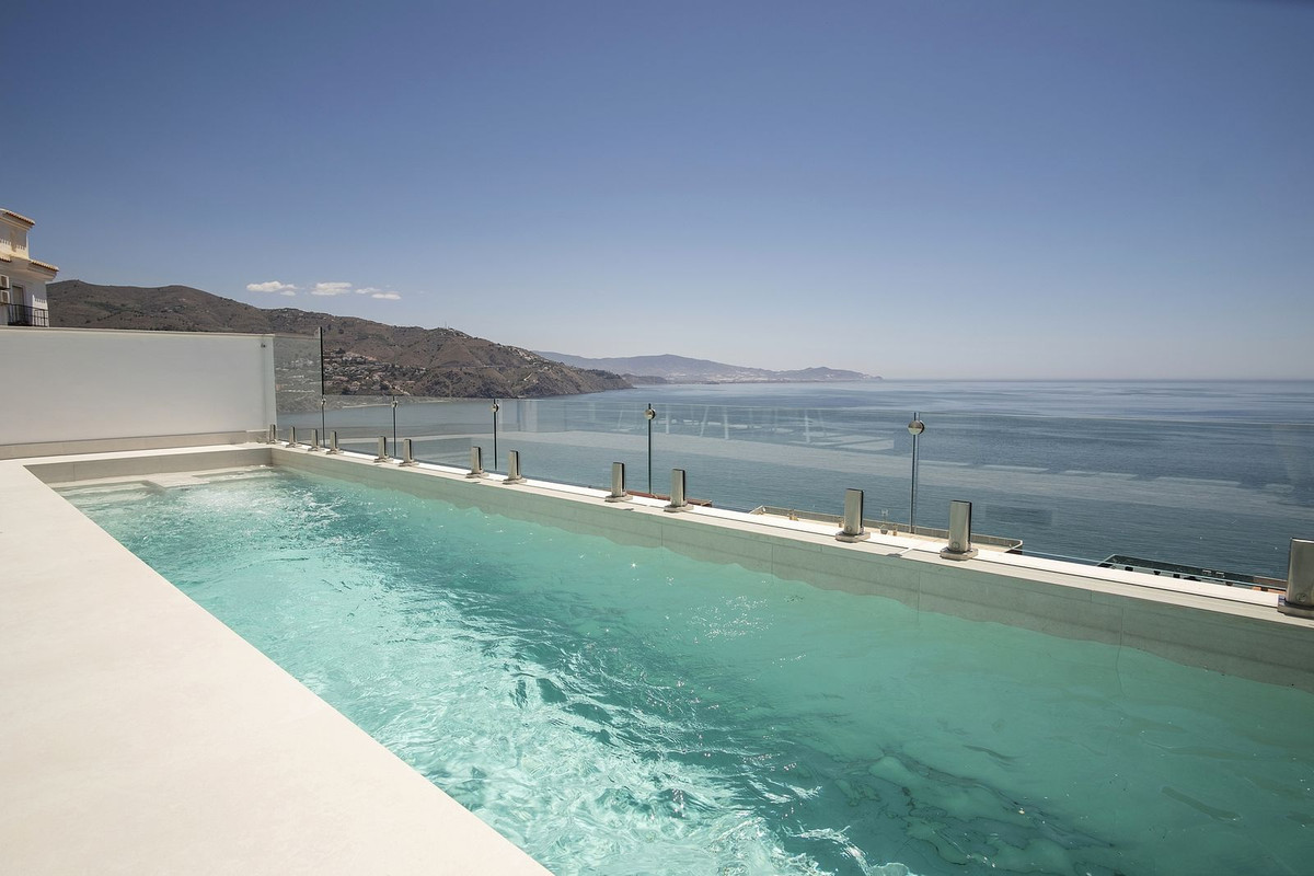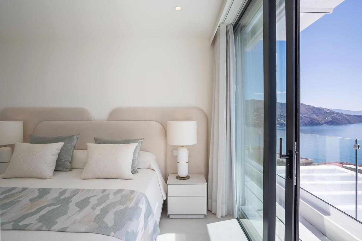 This beautiful villa is in a dream location on the tropical coast of Almuñécar. A villas of spectacular design, with 180º panoramic views over the sea. Located just 100 meters from the beach, the residences are a true sanctuary for both body and mind, offering complete relaxation in an unrivalled environment. Just 45 minutes from Malaga airport, or Granada, or the majestic Alhambra and just a little further to the ski resort of Sierra Nevada, this is the perfect choice for those seeking a combination of luxury, comfort and an unbeatable location on the beautiful Andalusian coast.