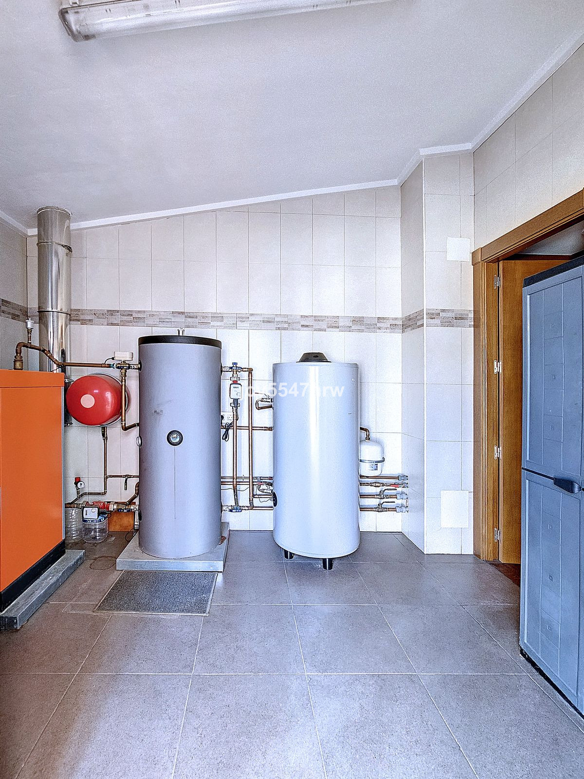 The property is in excellent condition throughout and is equipped with mains water, electricity, underfloor heating powered by biomass fuel, a modern high-quality biomass stove in the living/dining room, tilt-and-turn windows with double glazing, and a Verisure alarm system.