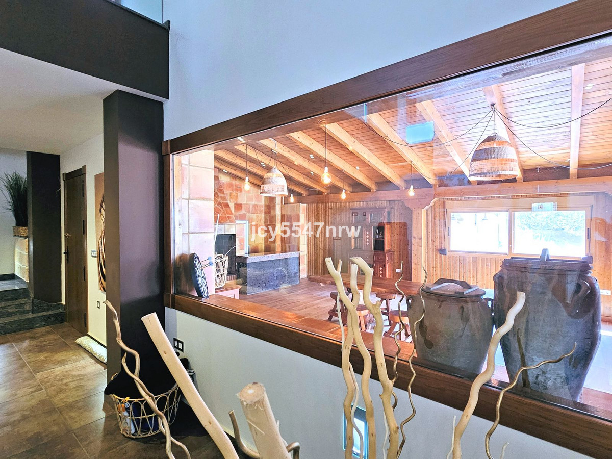 The enormous space next to the living room is accessible either through the main house or via a separate entrance and is perfect for entertaining. It has a large open fireplace, ideal for making family paellas, a wood-fired pizza oven, and a bar area. This space is also fitted with air-conditioning units. From here, there is access to the pergola, perfect for outdoor dining.