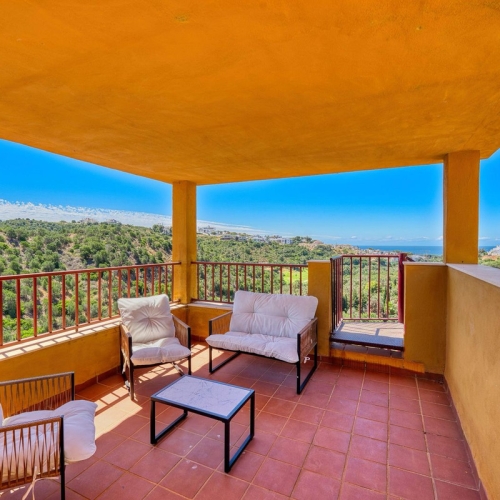 Charming 2 beds apartment, located on the first floor without elevator, just a five-minute walk to the beach in Elviria, located in the Urb. Golden Beach. At the entrance of the apartment we find a hall, and a small kitchen, two bedrooms and two bathrooms, one of them en-suite. A bright living room connects to the sunny terrace with beautiful open views towards garden areas.
