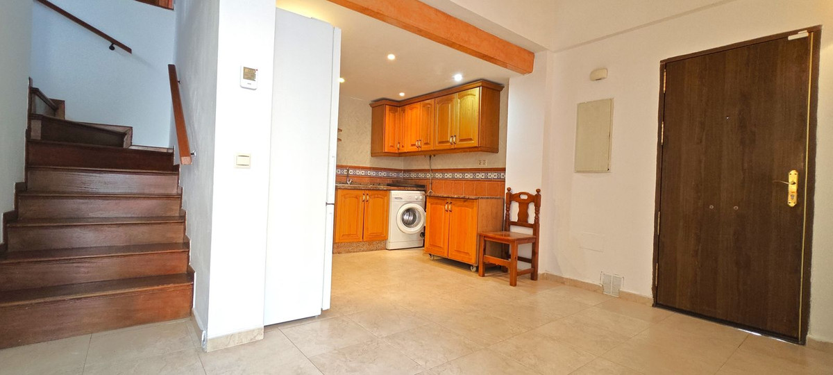Duplex apartment for sale in the heart of Benalmádena Costa, located in a charming square on the second line of the beach. The apartment is a duplex with 2 bedrooms and 2 bathrooms, in perfect condition, as it was completely renovated in 2014. All plumbing, wiring, tiling, flooring, wardrobes, windows, and enclosures were newly installed. It features double glazing, air conditioning, vaulted ceilings, and a fireplace.