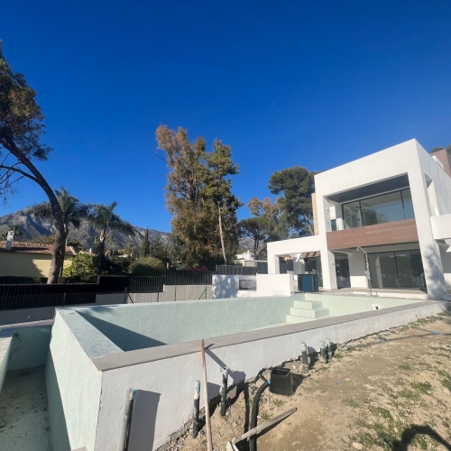 This beautifully renovated villa is located in the highly desirable gated community of La Capellania Hill Club, on the prestigious Golden Mile. Spanning nearly 500 sqm across three floors, all connected by an elevator, the villa boasts six en-suite bedrooms. The spacious living and dining areas offer stunning views of the lush gardens and the sea, while the large, fully renovated kitchen features a separate dining area.