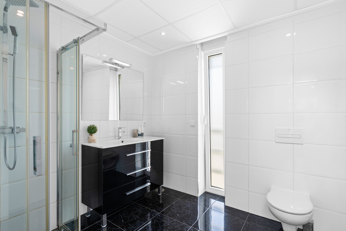 Outdoor areaThe villa is set on a south-facing plot of 500 m2. Here you can find a breathtaking pool with two sections; the main pool and a "chill-out pool" with only 40 cm depth. A bridge separates the two sections. Furthermore you can find an outdoor shower, a guest toilet, parking for two cars, a covered dining area, an outdoor kitchen / BBQ and a herb garden.