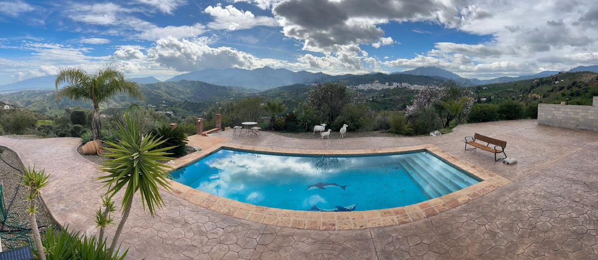 Your first class bungalow finca with own pool ( 4 x 10 ) in Guaro on the best location from the area, 180º degrees panoramic valley and mountain view, totally open, all green like the best emerald. During most of the days of the year one can see a stripe of seaview towards the east over Malaga city.