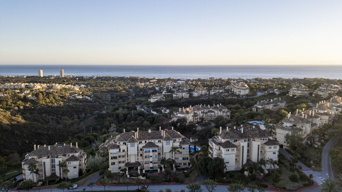 Residents of Elviria Hills benefit from excellent amenities, including a golf course, a communal swimming pool, and the renowned Michelin-starred restaurant "El Lago." The property also comes with a secure underground garage and additional storage space for convenience.