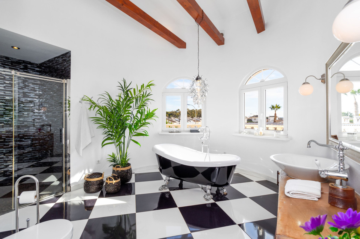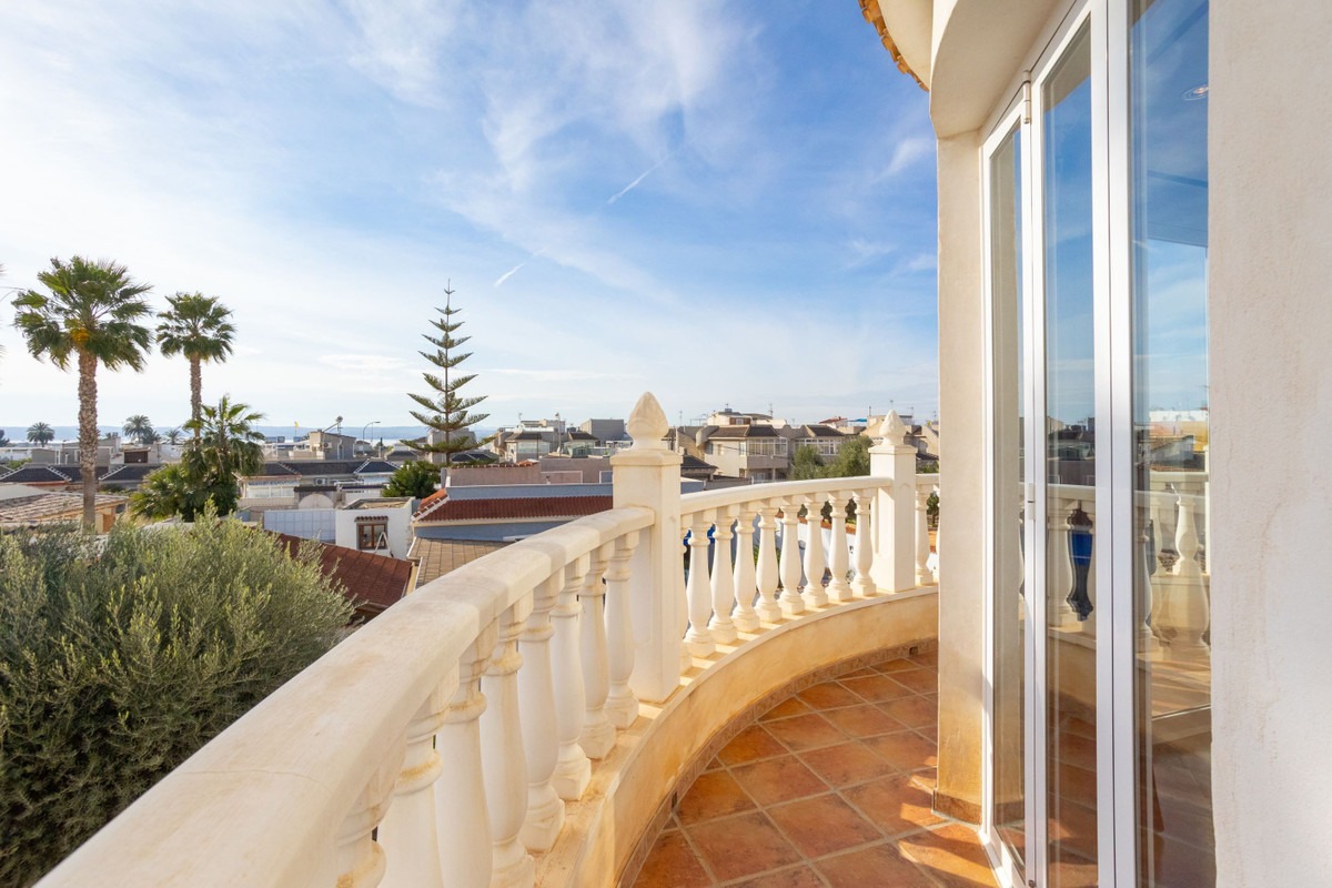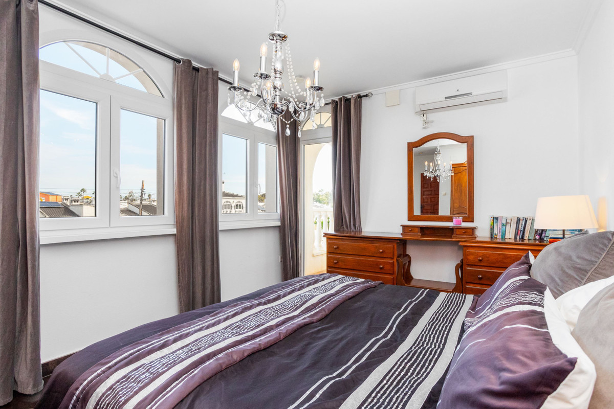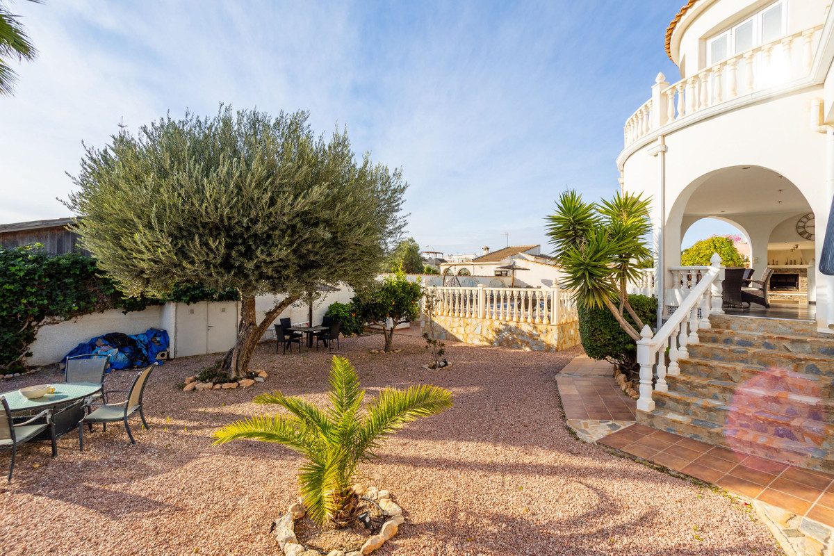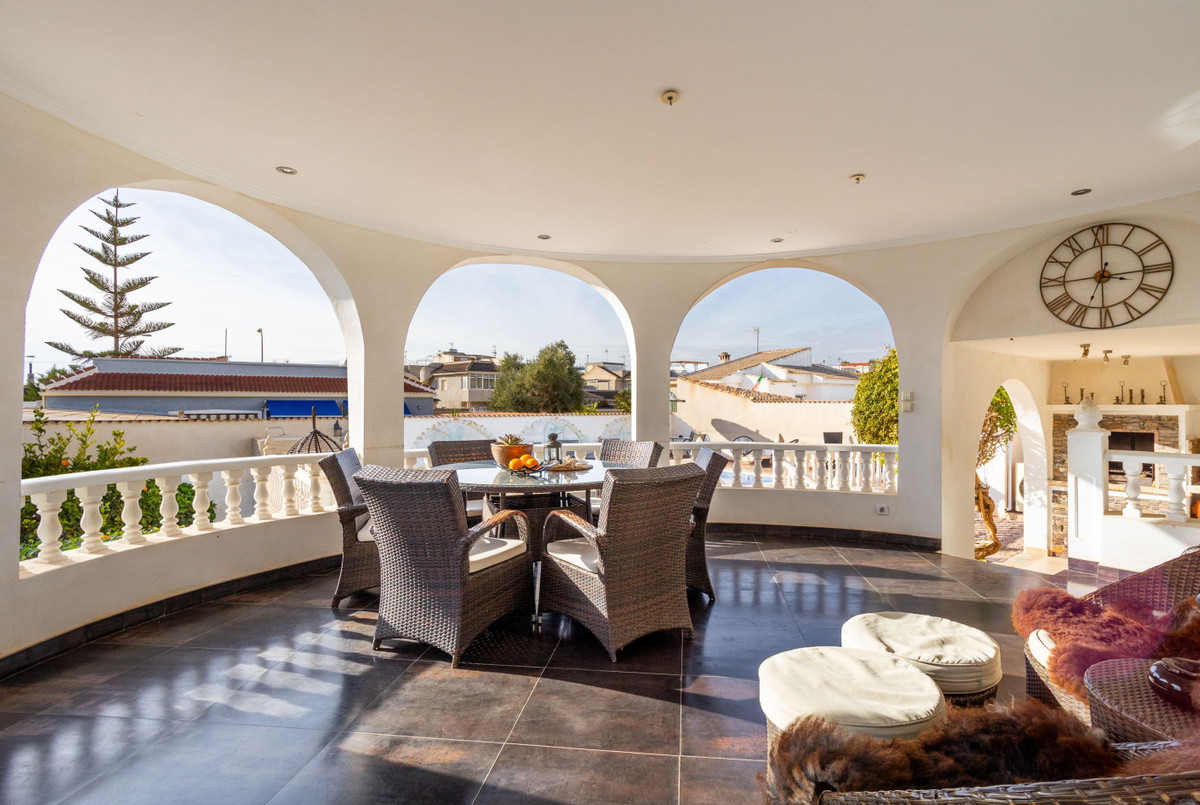 Elegant villa with fantastic light flow and private pool A warm welcome to this elegant villa with a nice location in El Chaparral. The villa, which consists of five bedrooms, four bathrooms, living room and kitchen, was renovated in 2015 and is in very good condition. On the large plot there is a private pool (heated) and plenty of space for outdoor furniture and sun loungers.