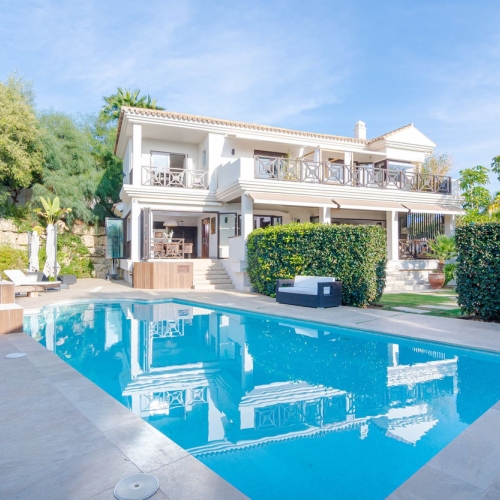 Situated frontline golf of Las Brisas Golf Club in Nueva Andalucía, the location is one of Villa Imagine's standout features. Las Brisas is known for its tranquil residential setting, beautiful landscapes, and proximity to top Marbella amenities. Nueva Andalucía blends tranquillity with convenience, offering easy access to the vibrant Puerto Banús, famous for its luxury marina, high-end shopping, and fine dining. Residents enjoy a serene atmosphere within a well-established neighbourhood while being a short drive from Marbella's bustling heart.