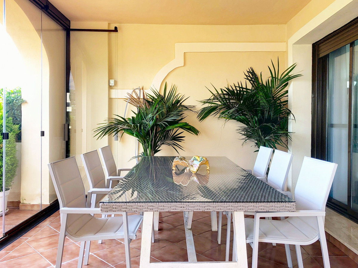 The property is equipped with air conditioning, electric blinds, double glazing, and a reinforced door for added security. Additionally, the building features an elevator and a secure entrance. Residents can enjoy mature gardens, several communal swimming pools, and a social club area. The community is gated and offers a safe and peaceful environment, ideal for enjoying life on the Costa del Sol.