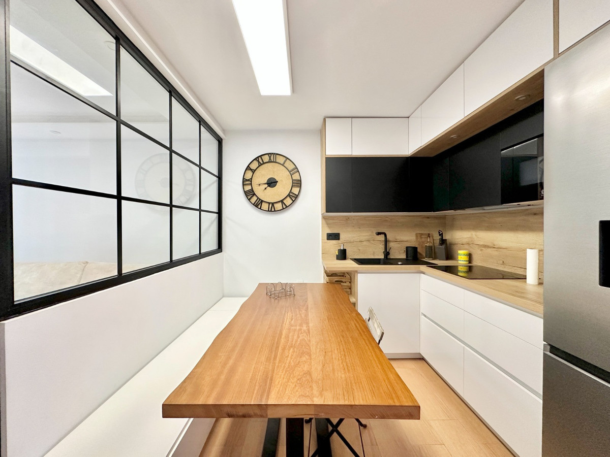 The interior boasts a fully fitted open-plan kitchen, complete with modern appliances, seamlessly integrated into the living area.