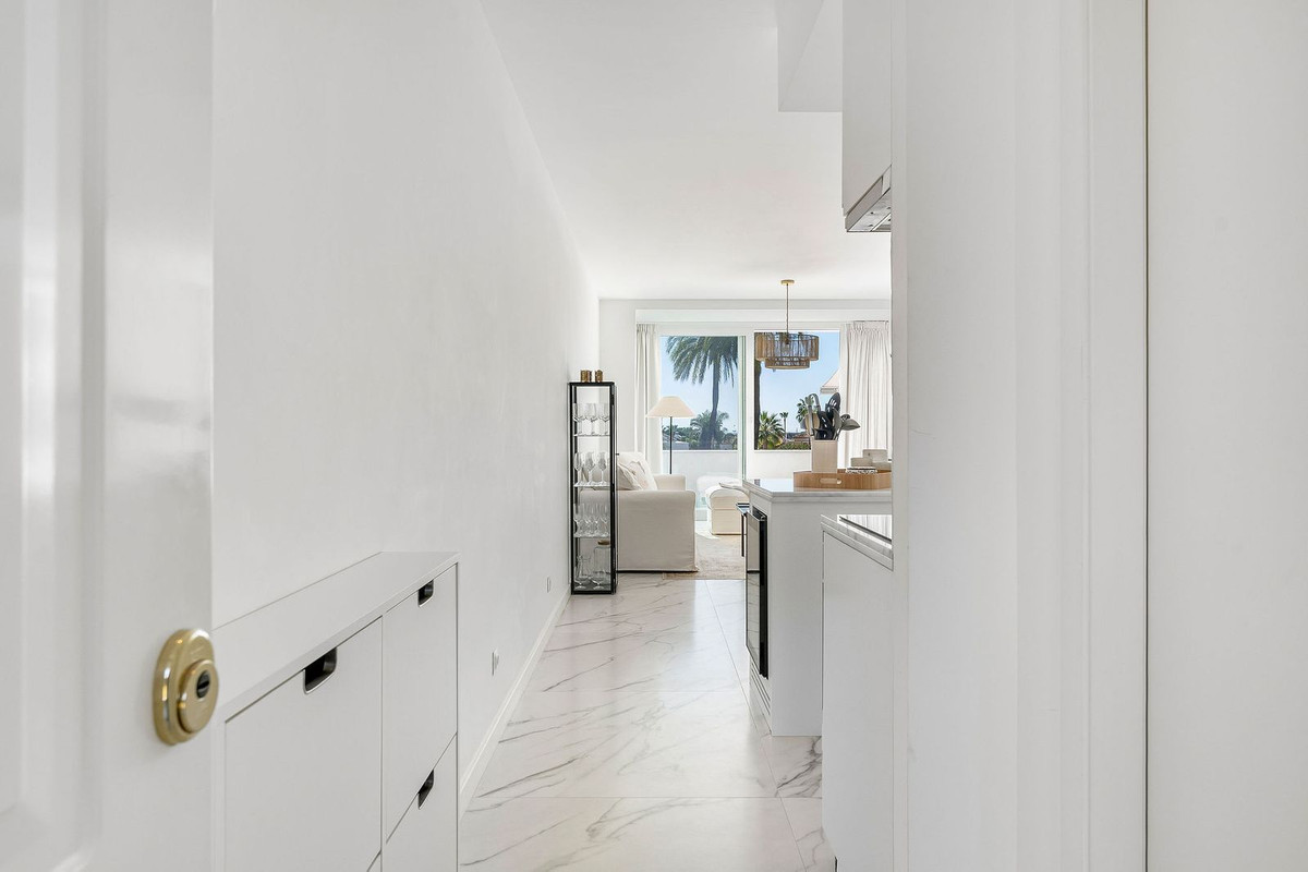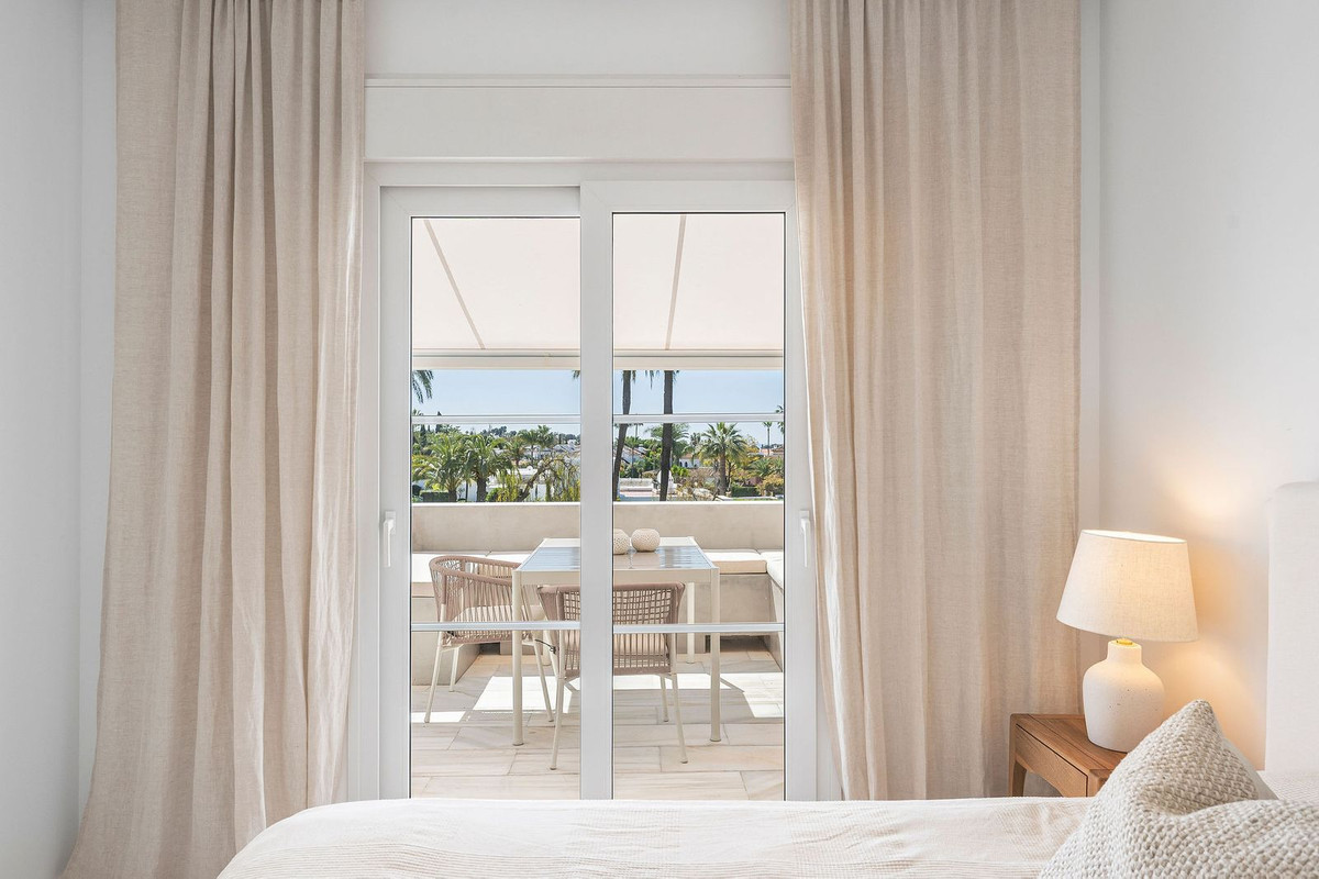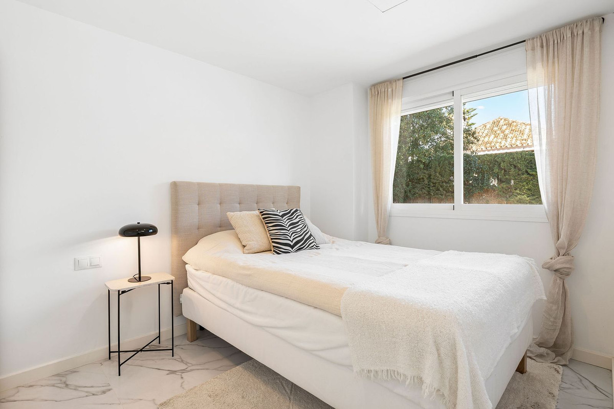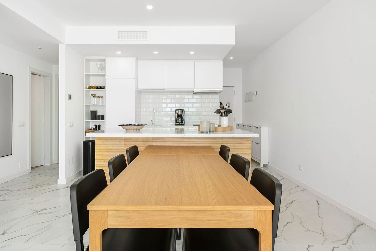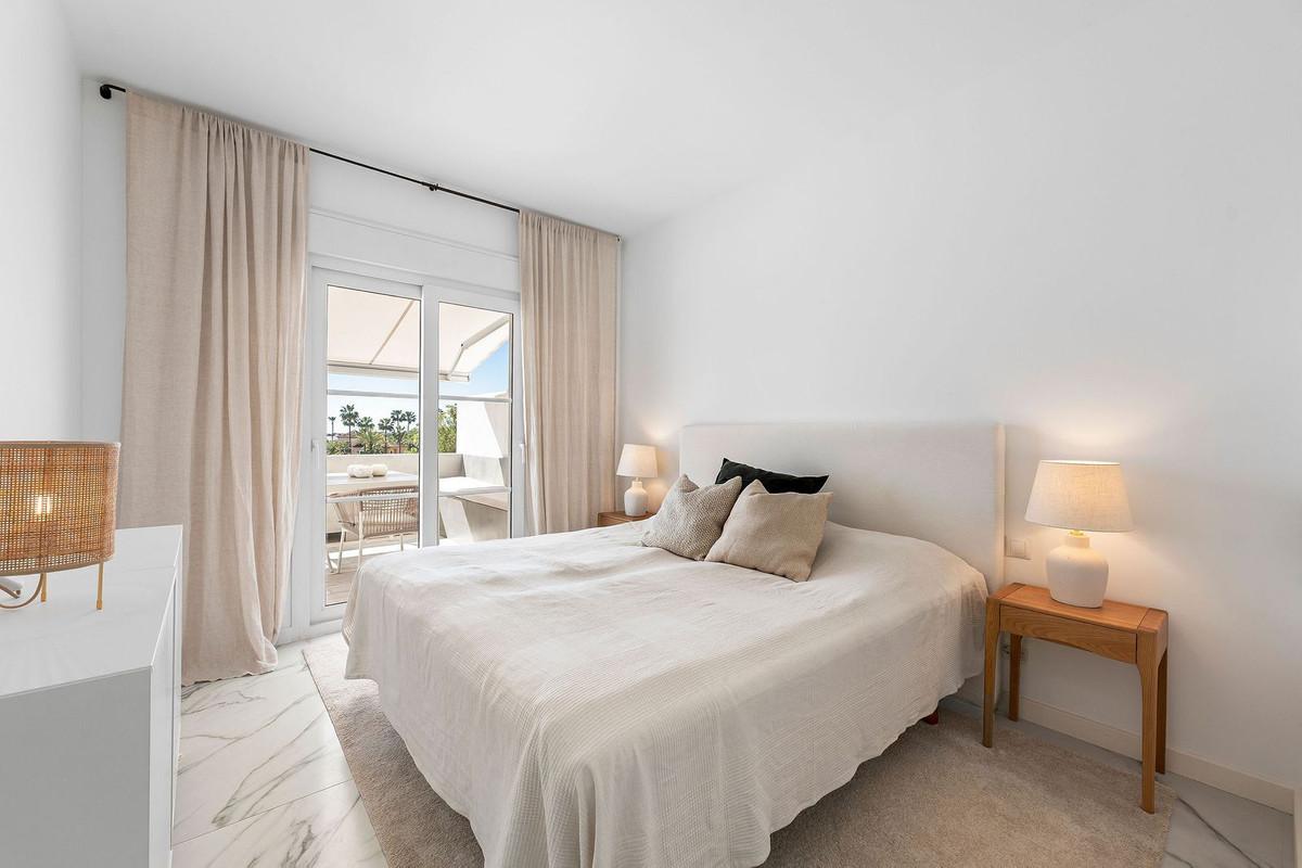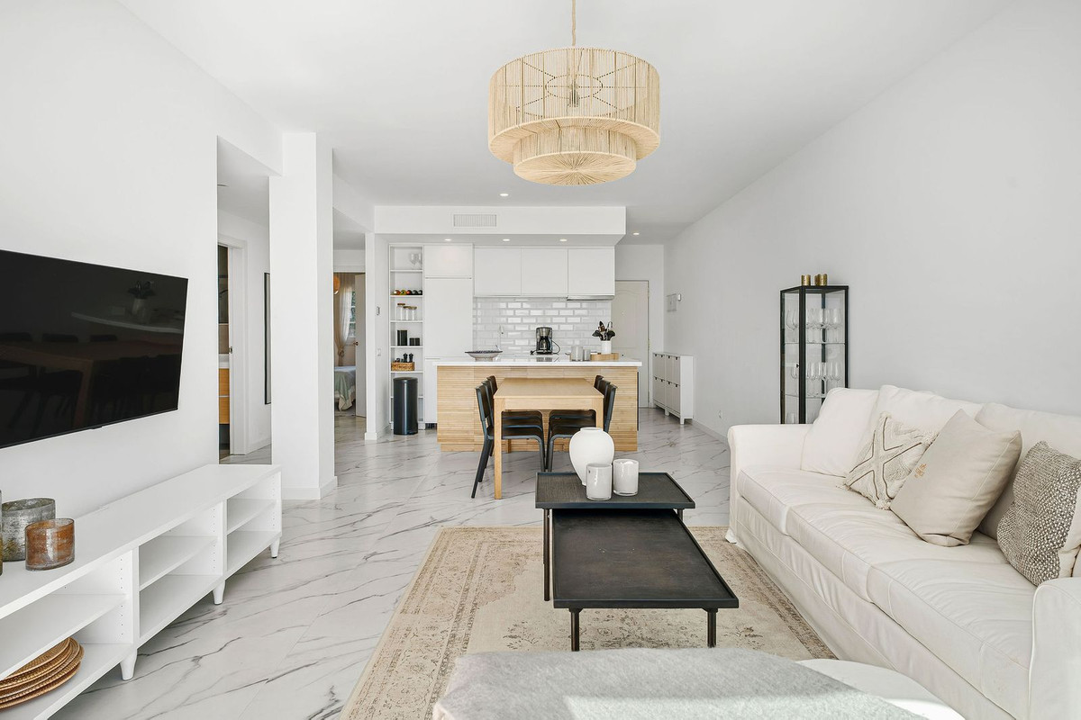 A rare opportunity to buy a top floor renovated apartment situated in the popular gated complex of La Rinconada in the Golf Valley, Nueva Andalucia within walking distance to restaurants, shops, bars, cafe's, sports facilities and just few minutes' drive to best golf courses the area has to offer. The property has a south orientation, providing views overlooking the well-manicured garden and pool area. The apartment is bright and spacious featuring an open-plan modern kitchen, living/dining area leading out onto the spacious private terrace with aditional seating area, three bedrooms, one of which is ensuite and two guest bedrooms sharing a bathroom. Further features include covered parking and U/F heating in bathrooms.
