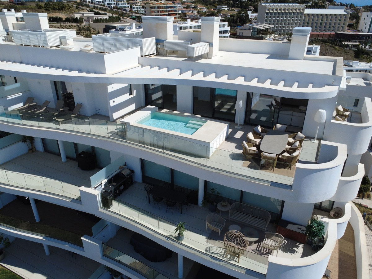 We present this incredible penthouse/sky villa located in the luxurious Higuerón West 217 complex of Higuerón Resort, overlooking the entire Fuengirola coast.