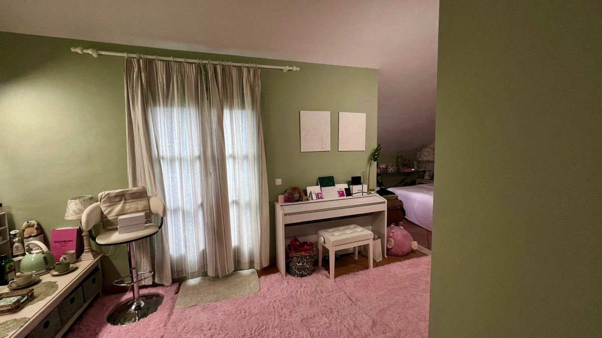 Inside, the property features a fully fitted kitchen, an open-plan living and dining area that connects seamlessly to the private terrace and garden, and a covered porch area that can function as a fourth bedroom. All three bedrooms are en-suite, with the top floor offering a nearly independent suite including a spacious bedroom, dressing area, en-suite bathroom, and private terrace – ideal for family privacy or guests.