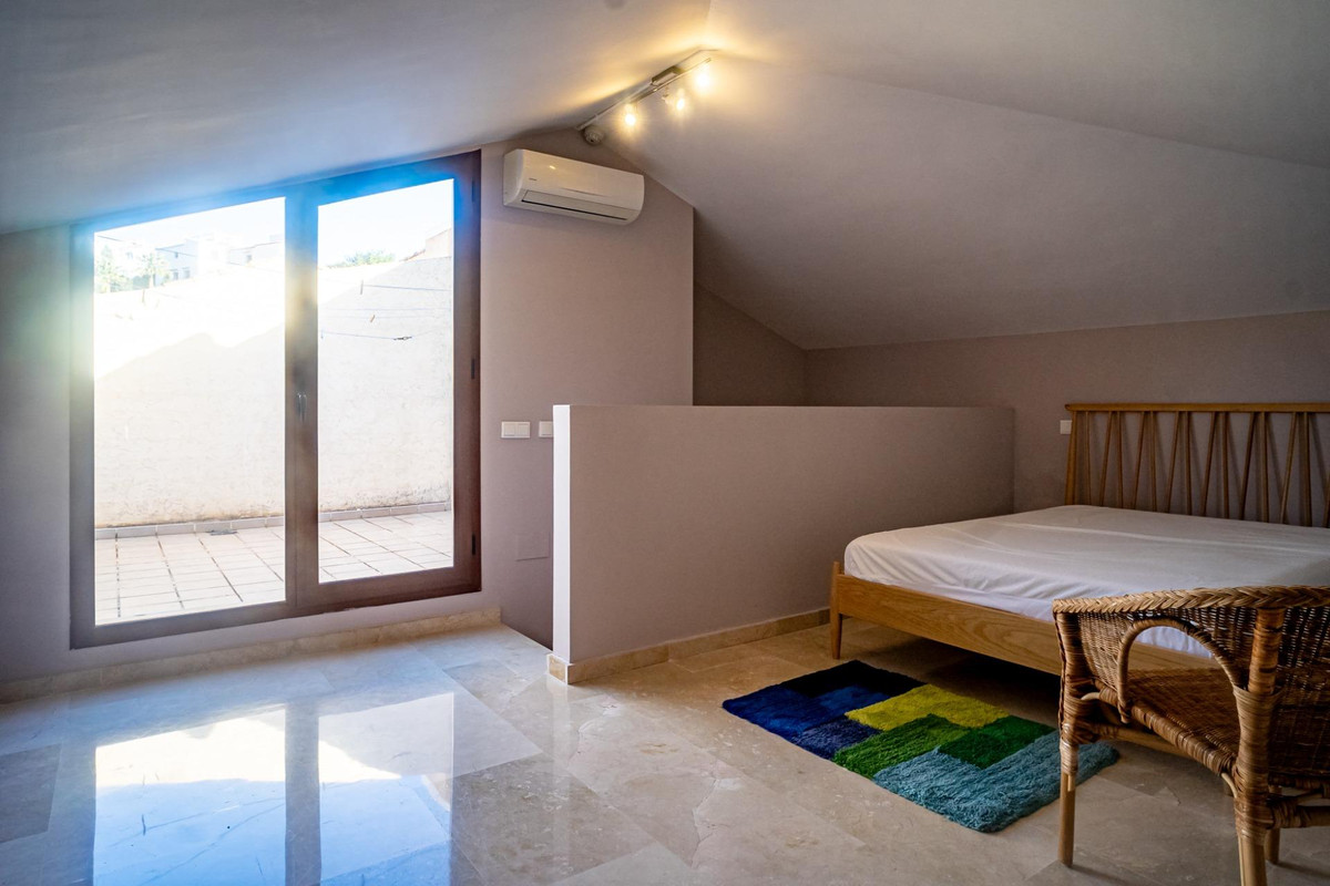 On the second floor, there is a versatile space that can be used as an additional bedroom or an office, with access to a private terrace—perfect for sunbathing in complete privacy.