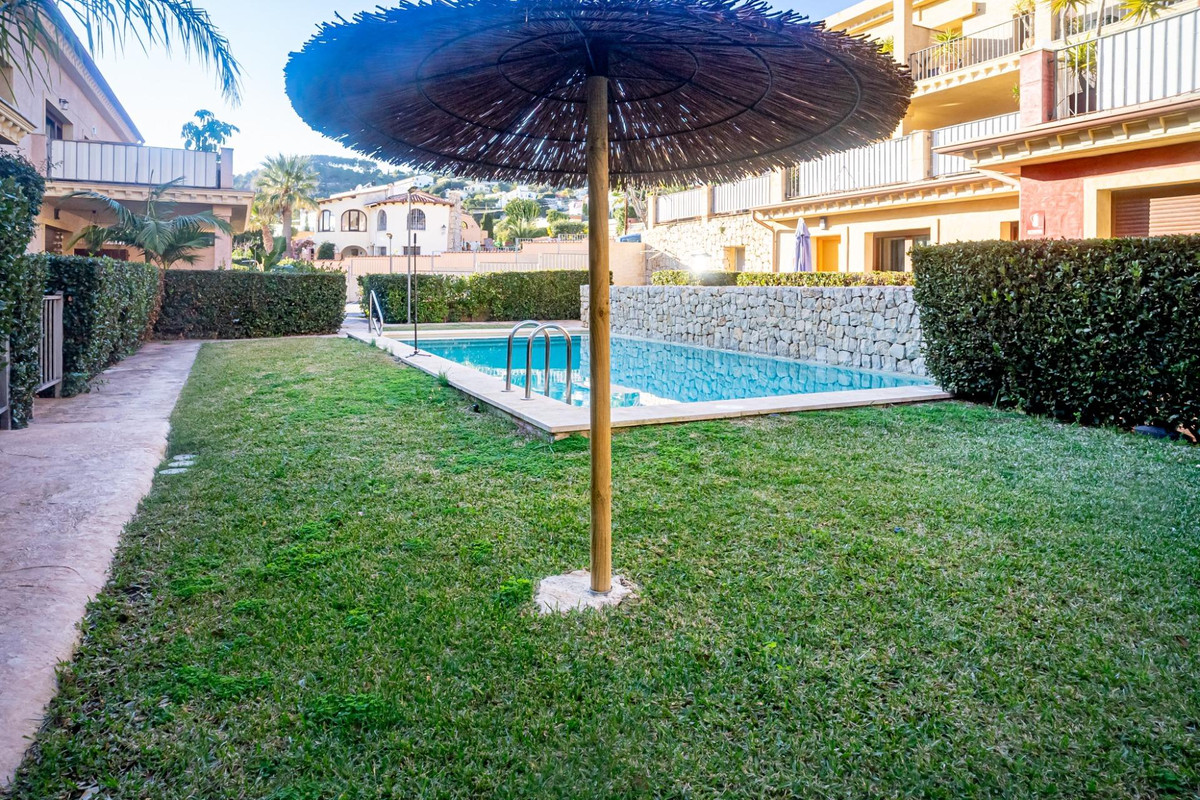 This cozy apartment is located in the popular urbanization of Montemar in Benissa. It features an open-plan kitchen, a living-dining room, two spacious bedrooms, and two bathrooms, one of them en suite. From the living room, you can access a large balcony with views of the pool and the mountains.