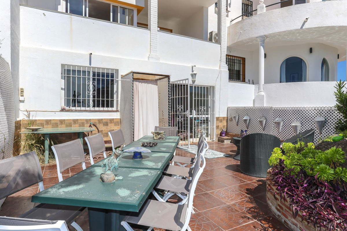 Studio. Downstairs we find a studio that leads to a terrace again with those lovely views. Other owners in the urbanisation have converted this room to an apartment, entertainment room etc. the options are endless. There is also a W/C in the studio.